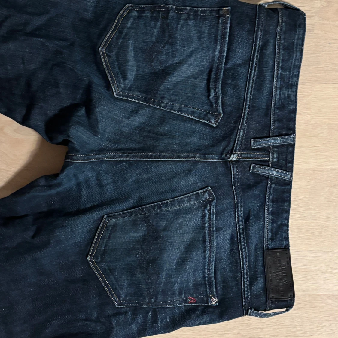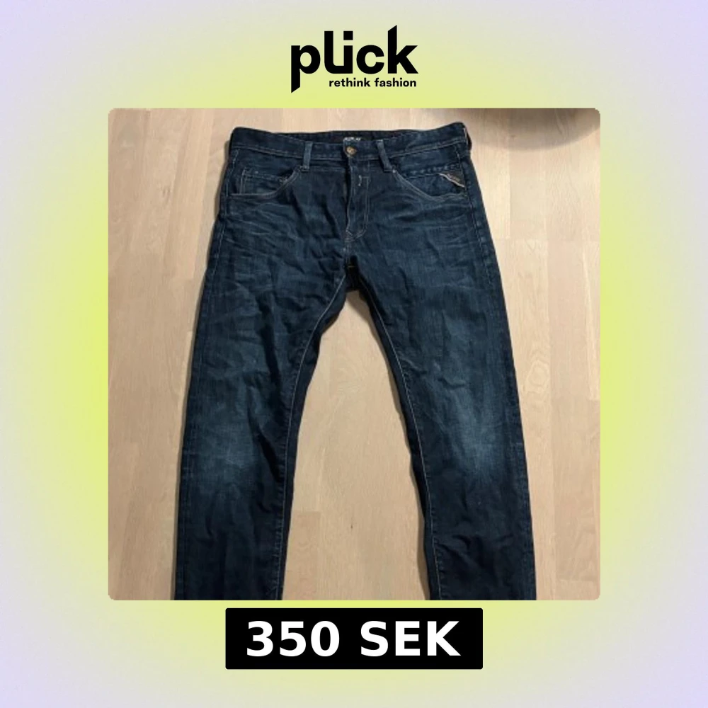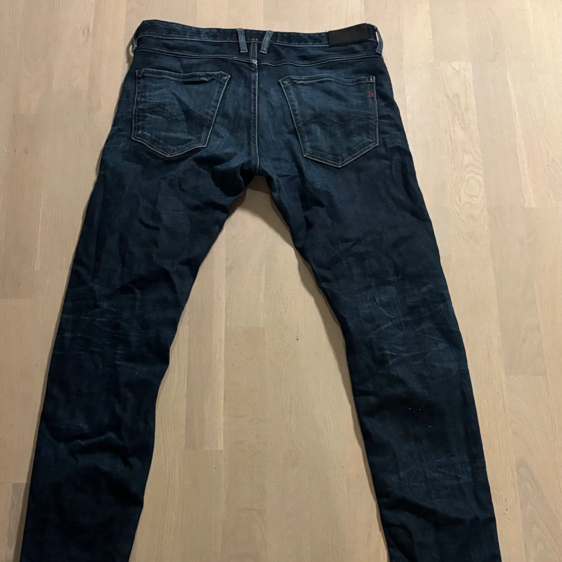 Snygga mörkblå jeans från Replay, modell MASIG. Klassisk femficksdesign med guldfärgad knapp och Replay-detalj på fickan. Jeansen har raka ben och är tillverkade i slitstarkt denimtyg. Perfekta för dig som gillar stilrena och tidlösa jeans.