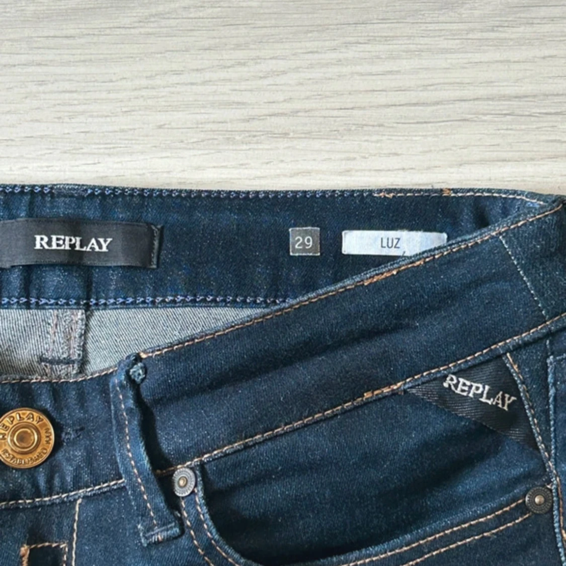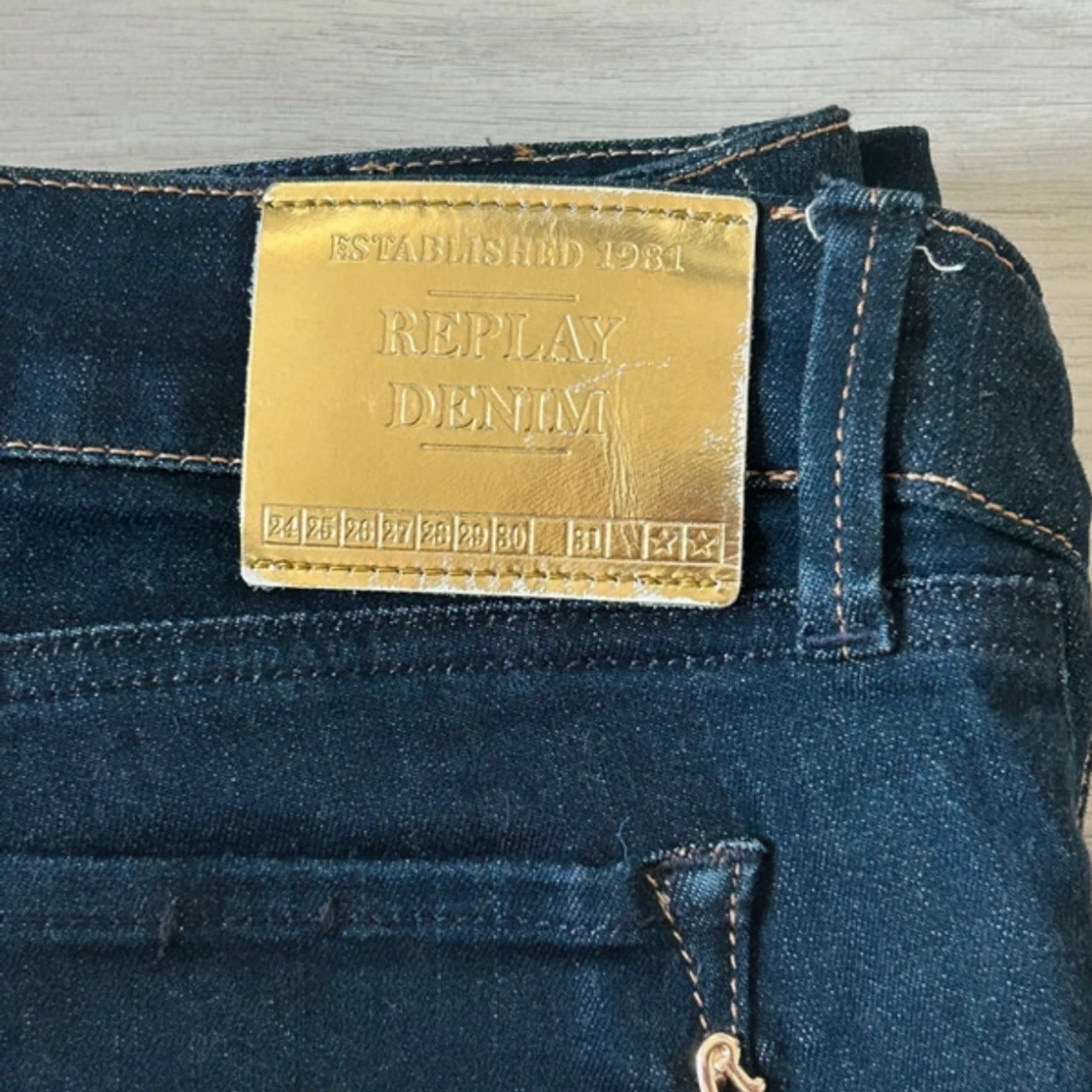 Snygga mörkblå jeans från Replay med klassisk femficksdesign och guldigReplay Denim-lapp bak. Jeansen har smal passform och kontrastsömmar, perfekta för en stilren look. Tillverkade i stretchig denim för extra komfort.