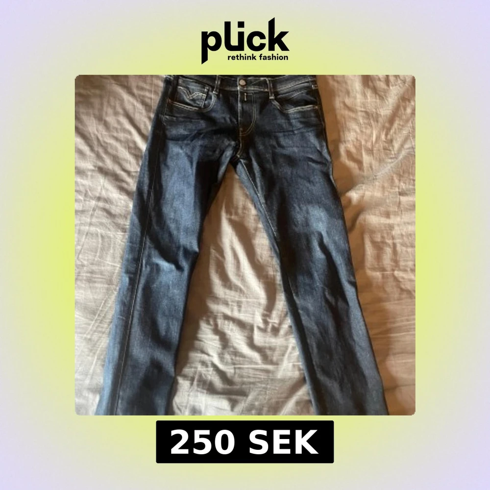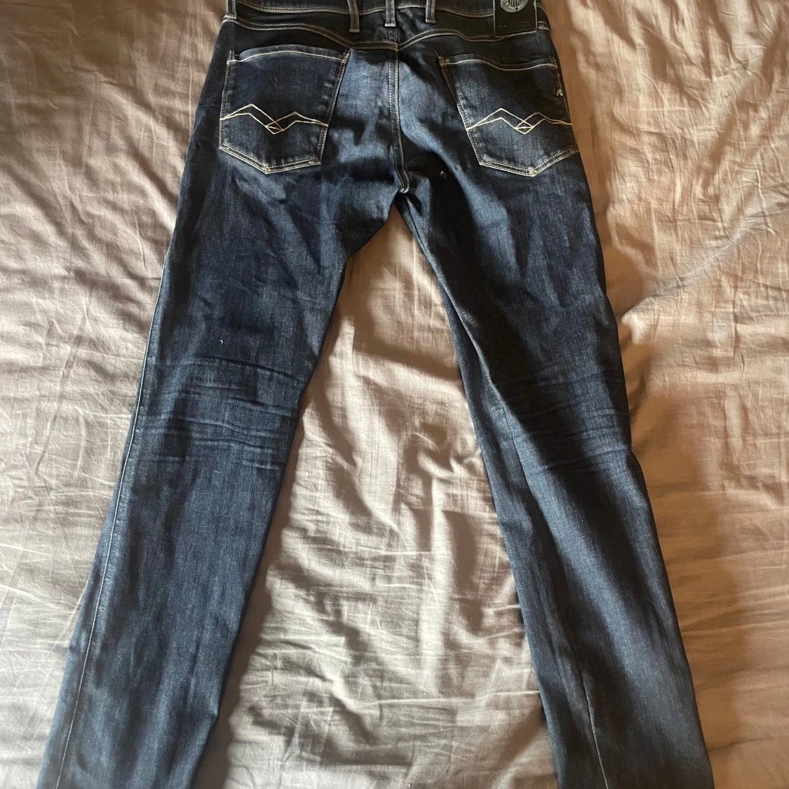 Säljer ett par mörkblå jeans från Replay som har storlek 30/32 finns ett litet hål som man kan se på bild 3 men syns inte när man har på sig dom