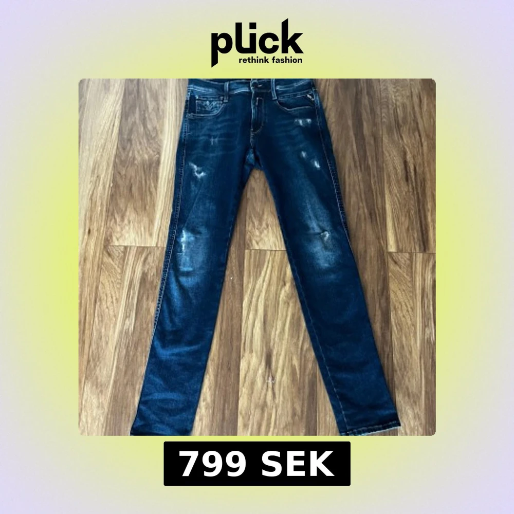 Säljer ett par mörkblåa replay anbass jeans med feta slitningar. Storlek 28/32. Det finns inga defekter och priset kan diskuteras. Nypris 1900! Hör av er vid frågor eller funderingar. Mvh kevins closet