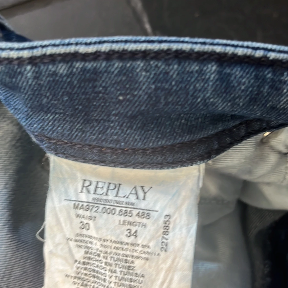 Storlek 30/34 Replay jeans färg mörkblå Straight fit Bra skick använt fåtal gånger pga av att de blev för små snabbt 1500kr nypris