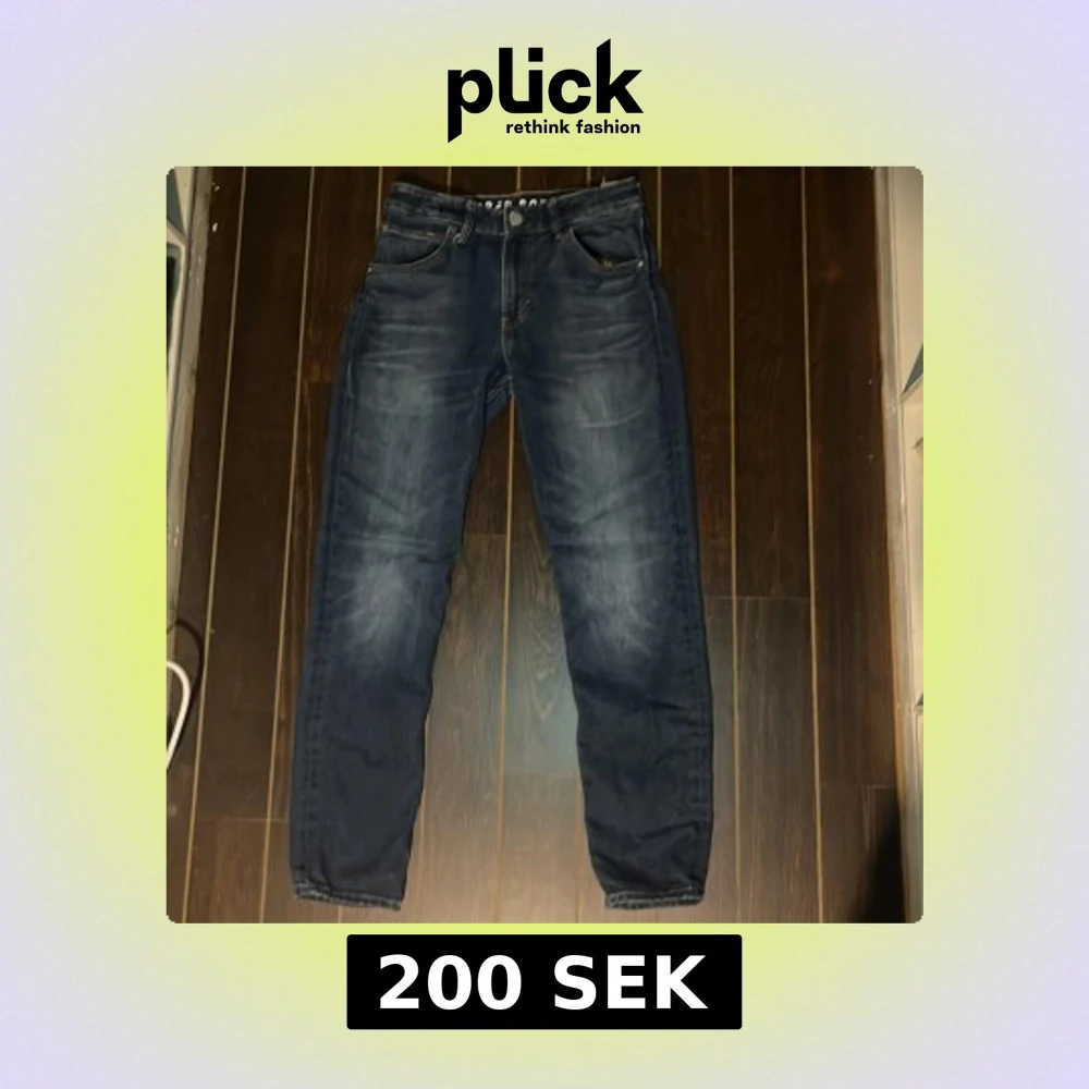 Snygga mörkblå skinny jeans från &Denim i stretchigt denimtyg. Klassisk femficksmodell med coola slitningar och kontrastsömmar. Bakfickorna har ett unikt sicksackmönster. Perfekta för dig som gillar en tight passform och stilren look.