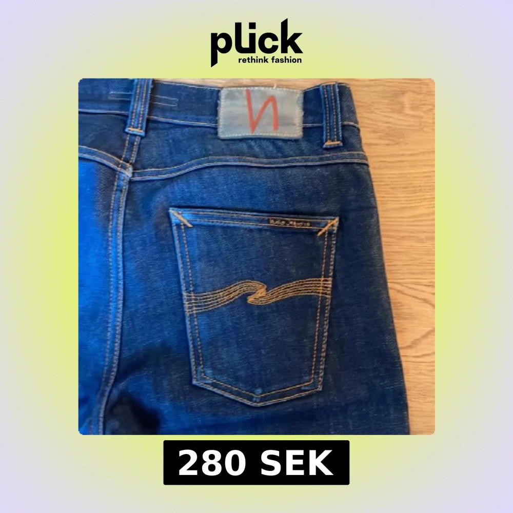 Snygga mörkblå jeans från Nudie med klassisk gul söm och tillverkad i slitstarkt bomullsjeans. Perfekta för dig som gillar stilren look.