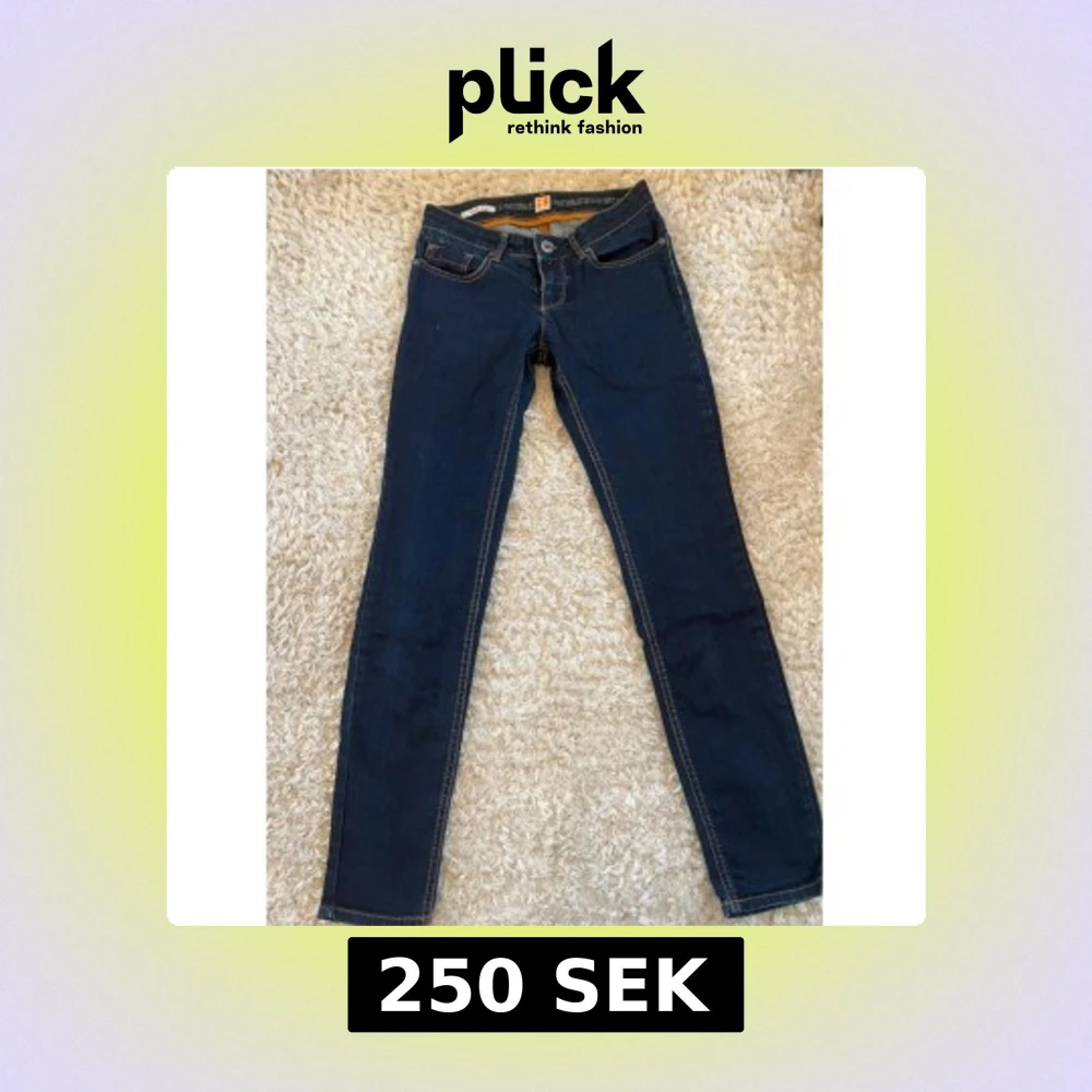 Snygga mörkblå slim fit jeans från Boss Orange. Perfekta för en stilren look. STORLEK W26/L32