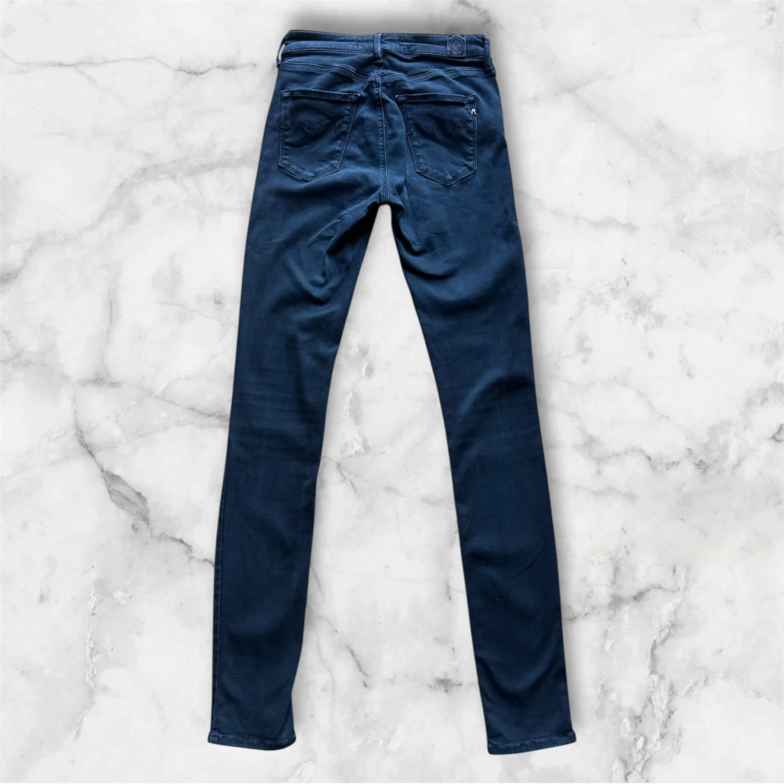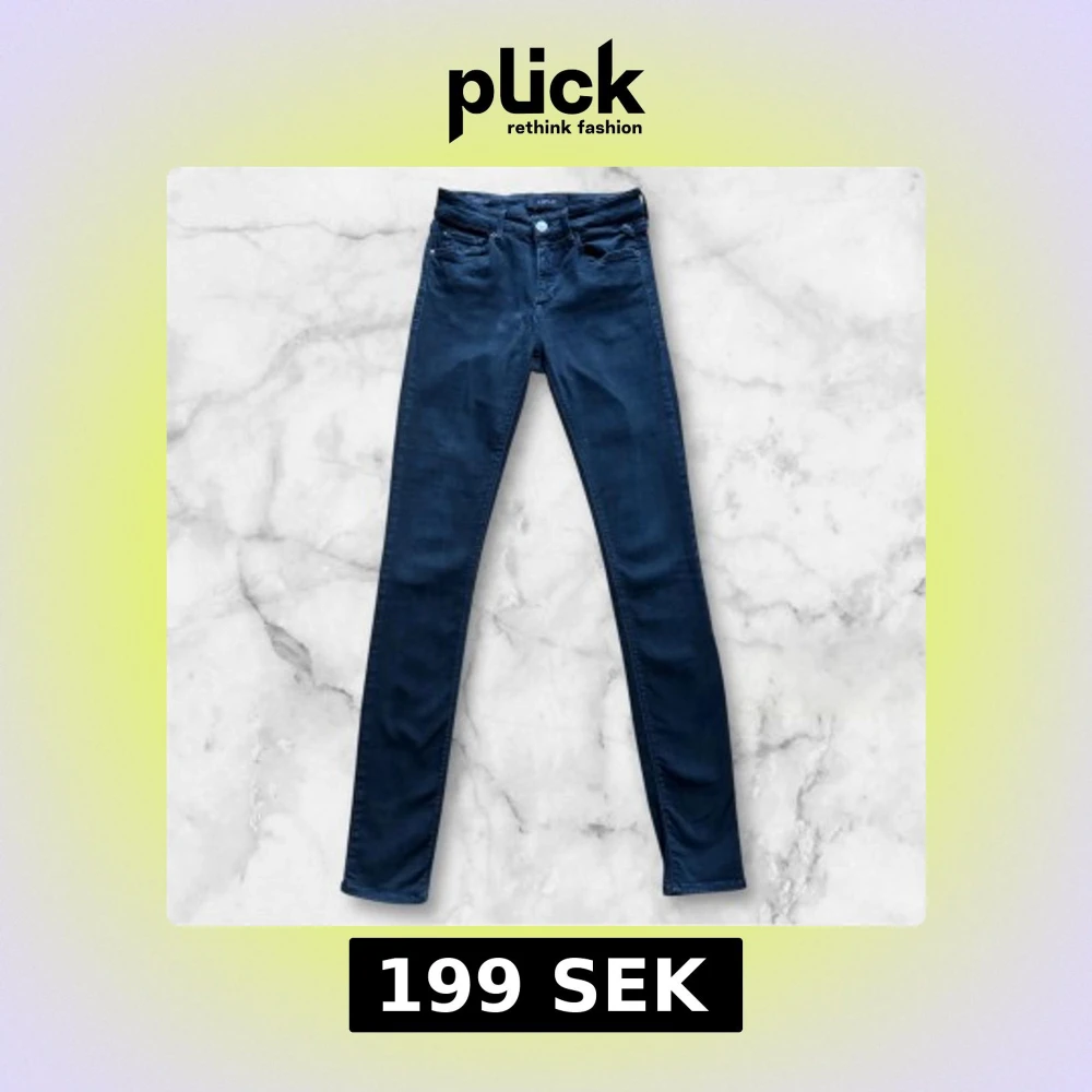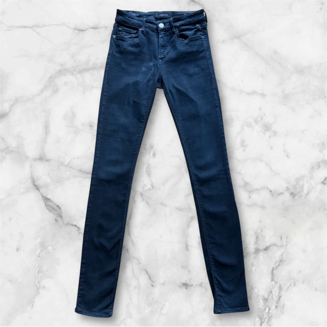 Snygga mörkblå jeans från Replay med slim passform. Klassisk femficksmodell med knapp och dragkedja framtill. Jeansen har en stilren look och är tillverkade i ett stretchigt material för extra komfort. Modell: New Luz