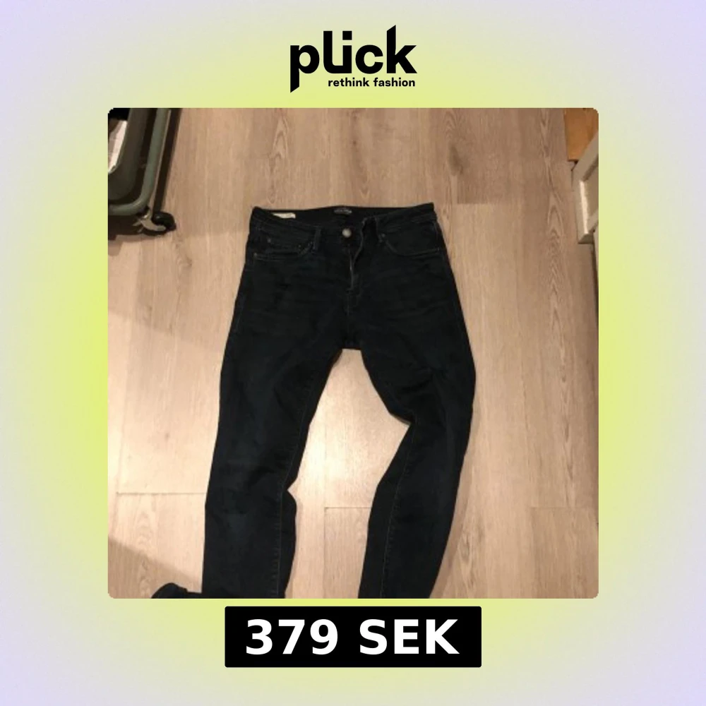 Säljer ett par mörkblå jeans med slim passform och snygga slitningar vid knäet. Jeansen har klassisk femficksdesign och är tillverkade i stretchigt denim för skön komfort. Perfekt för dig som gillar en tajt och modern look. Ny pris 1299 mitt pris 379