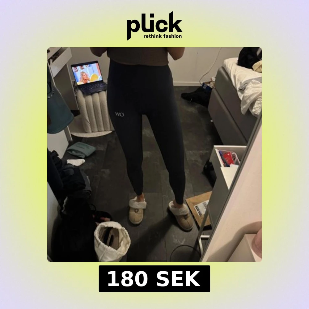 Snygga mörkblå tränings tights med hög midja. De har en tight passform och är gjorda i ett stretchigt material för extra komfort.