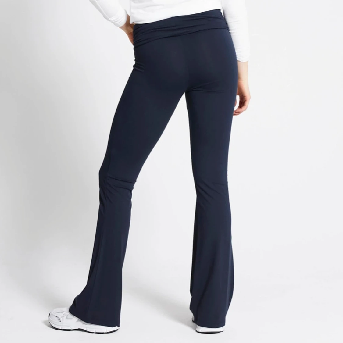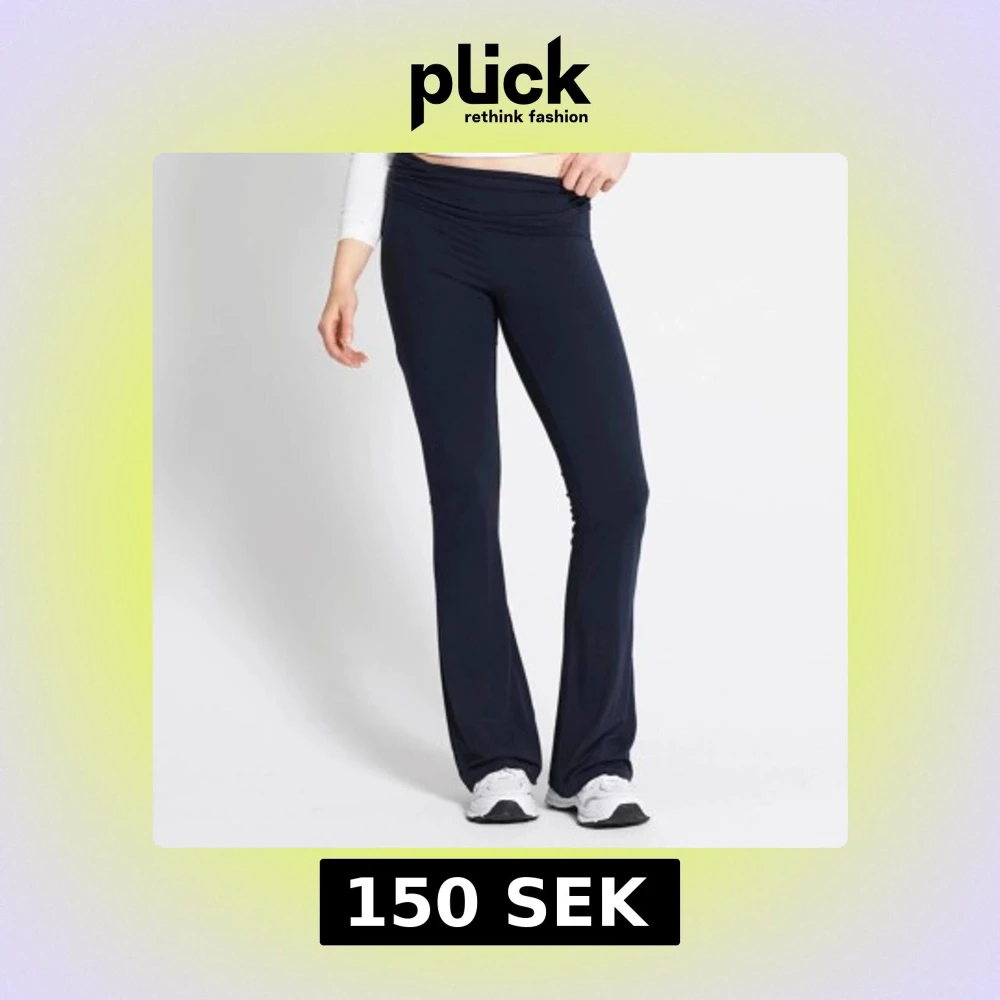 Snygga mörkblå yogabyxor med bootcut passform. Byxorna är tillverkade i ett mjukt och stretchigt syntetmaterial som ger en bekväm känsla (porto tillkommer).