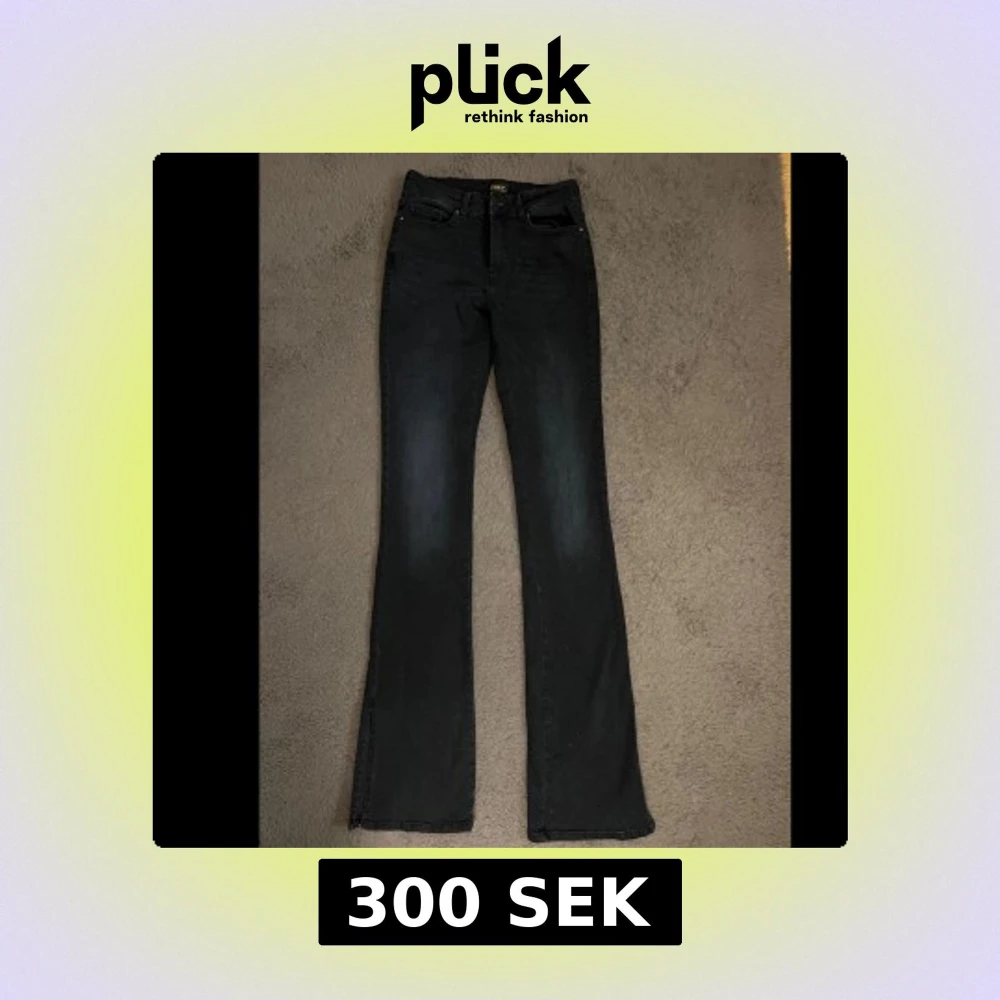 Snygga mörkblåa bootcut jeans med hög midja. De är i storlek 38 (tall). Har slits längst ner. Mycket bra skick nästan aldrig använda.