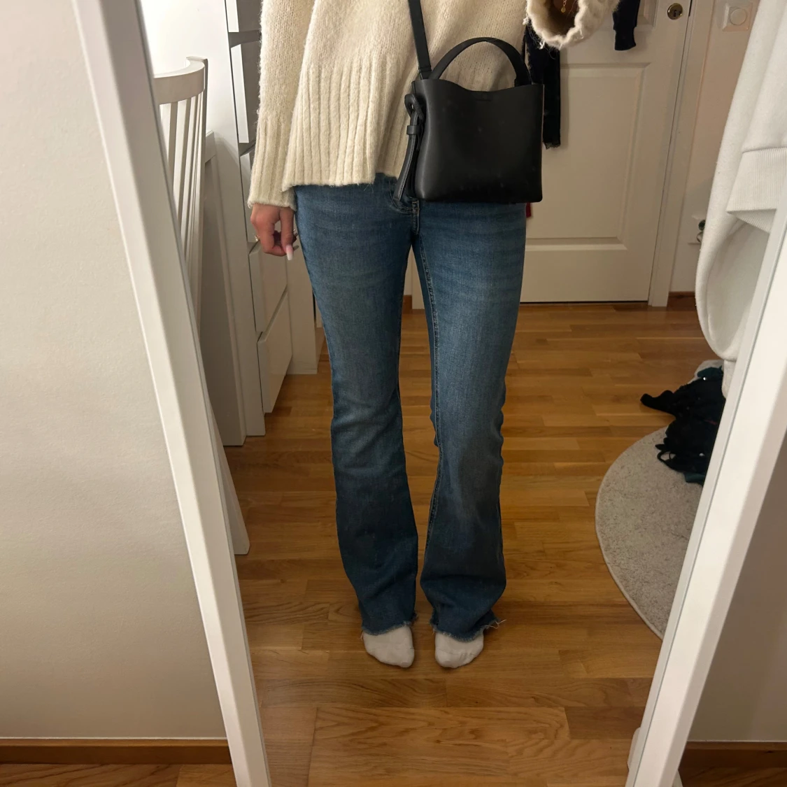 Kommer inte till användning längre, är nedklippta längst ner men inga andra defekter! Midjemått: 31+ stretch, innerbenslängd: 75cm💕går inte ner i pris!