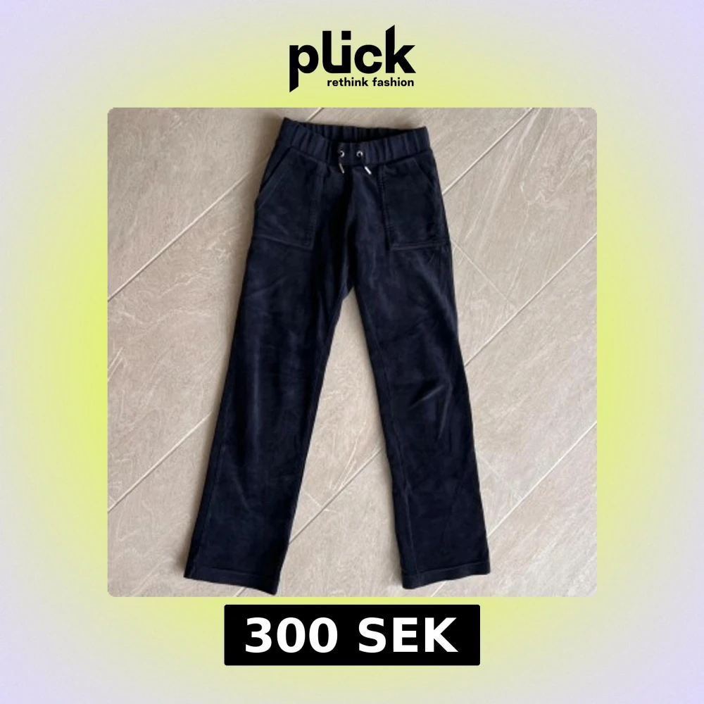 Säljer ett par mörkblåa juicy couture med raka ben och resår i midjan med snörning. Byxorna har stora fickor fram och bakfickor med knapp. Perfekta för en avslappnad stil. Säljer då de inte kommer till användning.