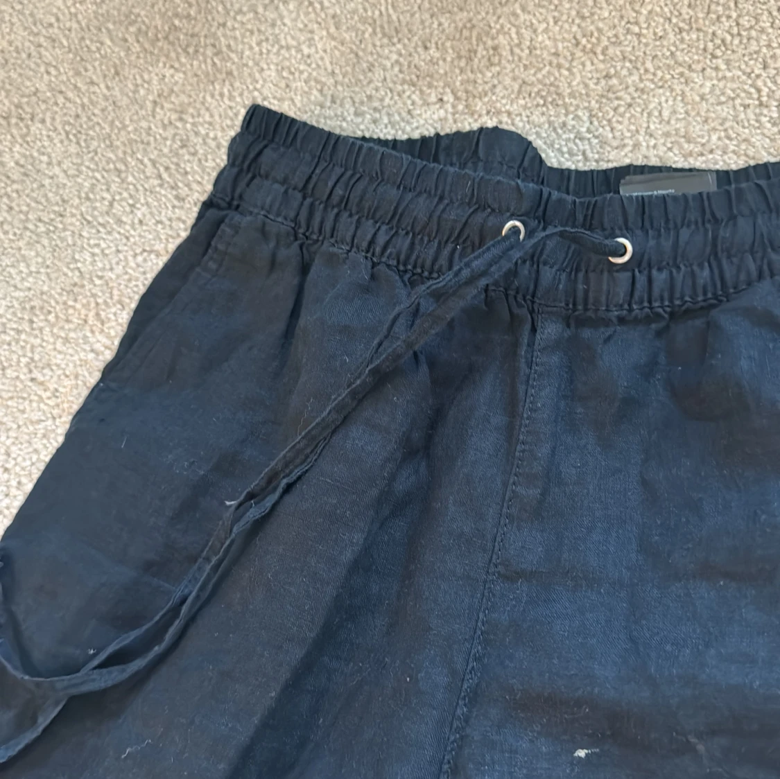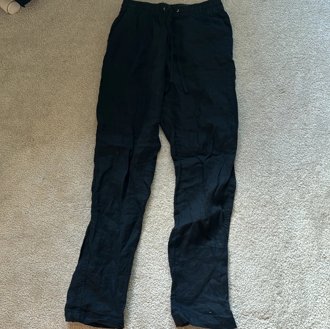 Ett par mörkblåa linnebyxor med snören. Sköna, tunna.