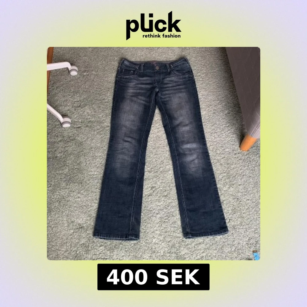 Mörkblå utsvängda lågmidjade jeans. Midjemått:39,5 cm Innerbenslängd:82 cm