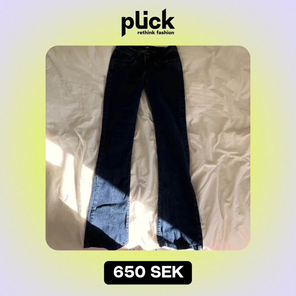 Säljer ett par snygga mörkblå bootcut jeans i från ltb i bra skit