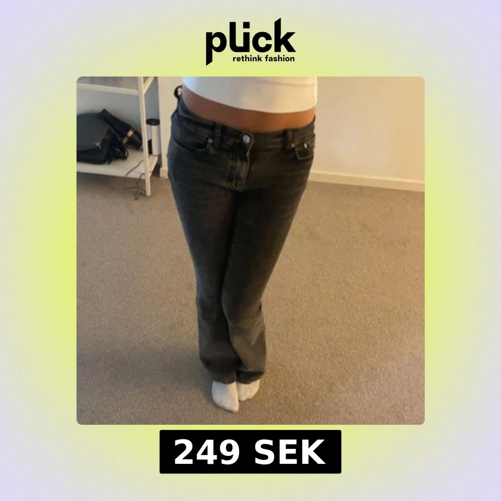 Snygga mörkgrå jeans med bootcut passform och låg midja. Jeansen sitter riktigt bra. Perfekta för dig som gillar en tidlös look med lite extra edge. Säljs inte längre i butik.