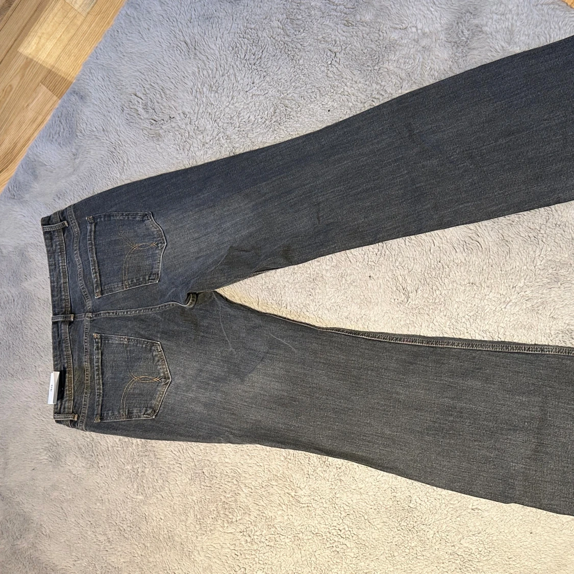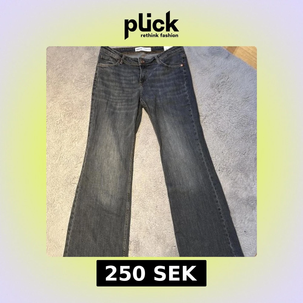 Snygga mörkgrå jeans från Berska! Vida i benen och low waist.