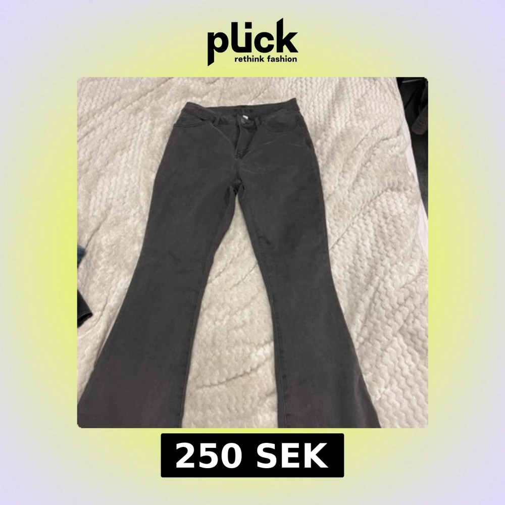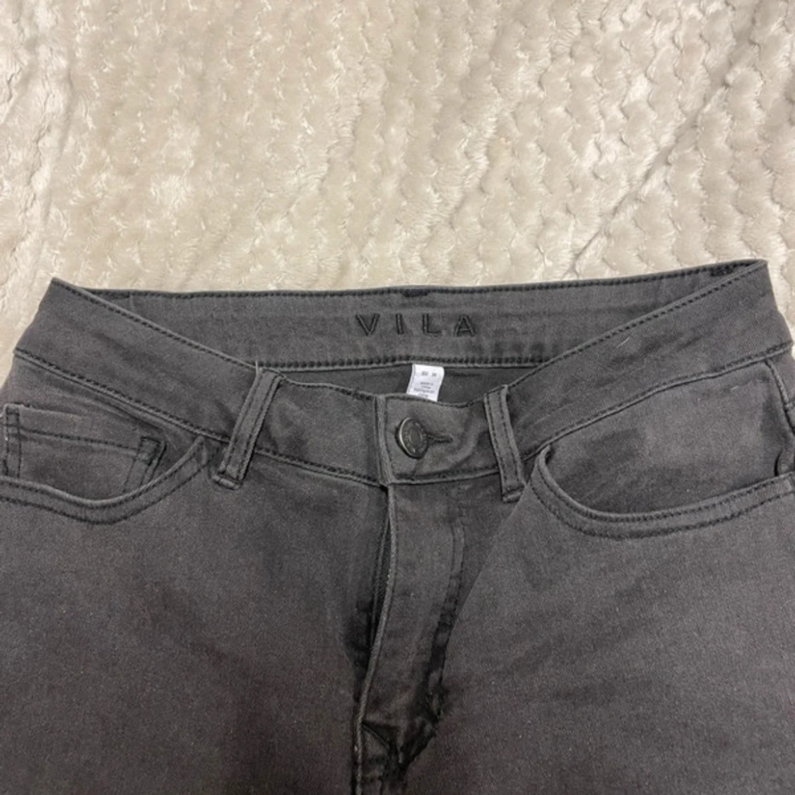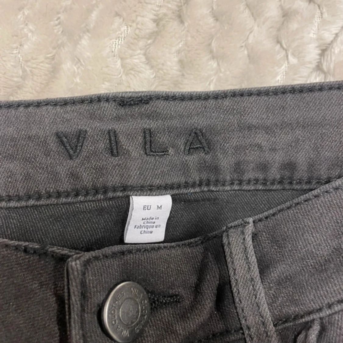 Snygga mörkgrå jeans från Vila i bootcut-modell med hög midja. Klassisk femficksdesign och knappstängning framtill. Jeansen är tillverkade i ett mjukt bomullsmaterial med lite stretch för extra komfort. Perfekta för dig som gillar en retro vibe och vill ha ett par jeans med lite extra attityd.