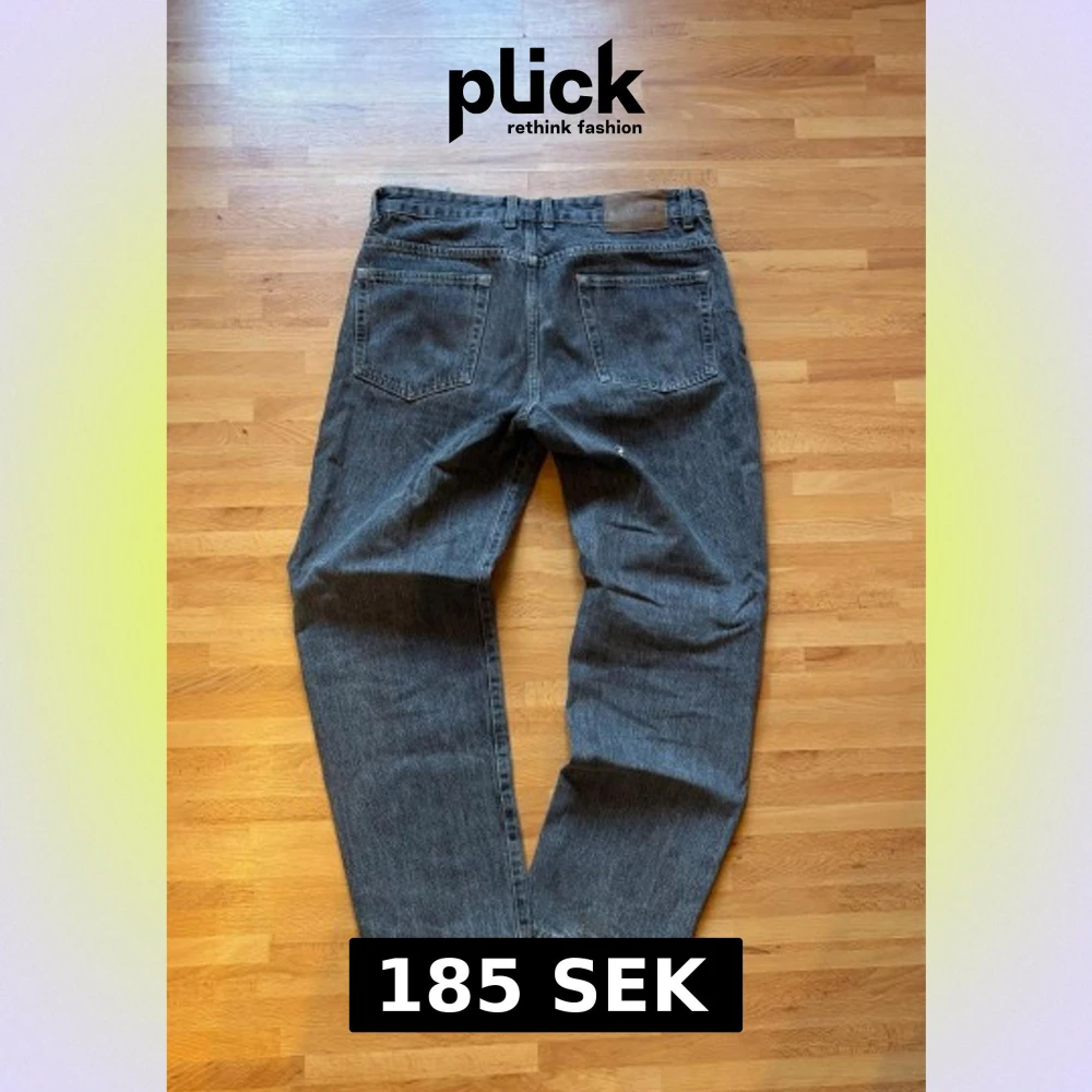 Säljer ett par mörkgrå jeans från Pull&Bear Straight fit. Jeansen har fem fickor, knappgylf och råa kanter vid bensluten för en avslappnad vibe. Passar dig som gillar lite loose och tidlös stil. På bild 5 så ser ni att byxorna har ett litet hål baktill, men det syns knappt när man har på sig dem!