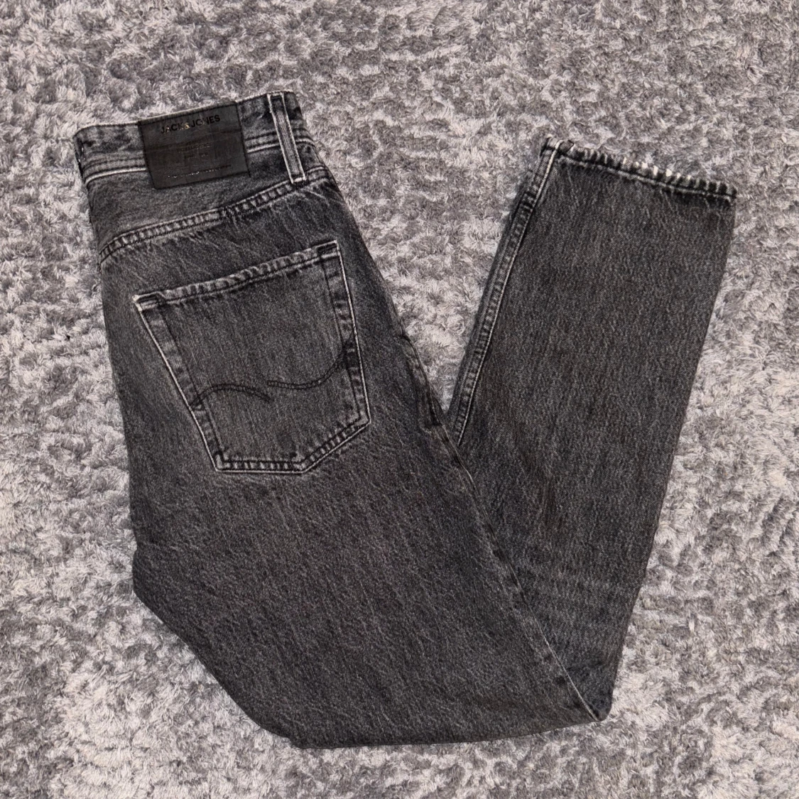 Snygga mörkgråa jeans från Jack & Jones i modellen Loose/Chris. Skön tvätt & i mycket bra skick. Storlek 28/32.
