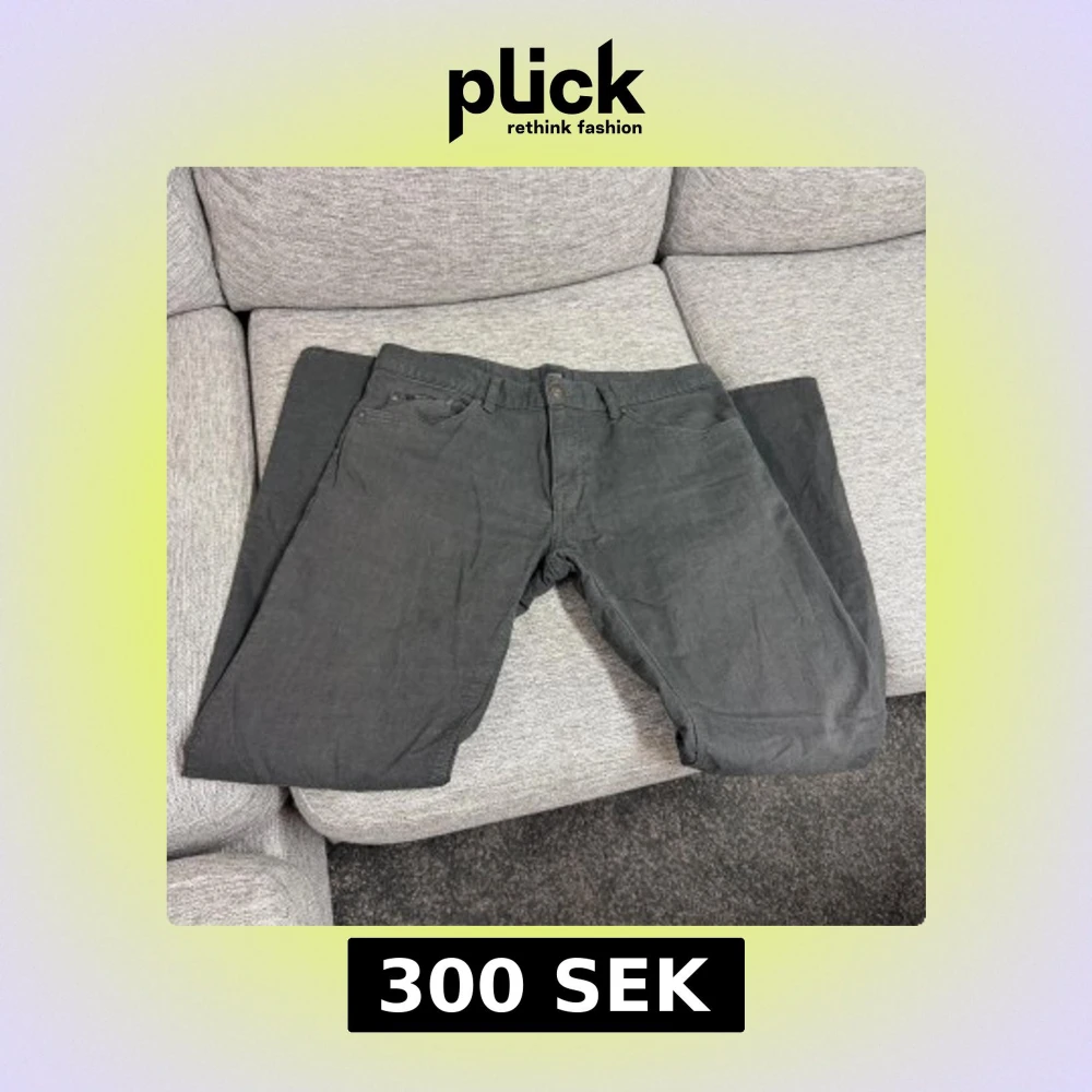 Säljer ett par mörkgrå jeansbyxor från Hugo Boss. Klassisk femficksmodell med knapp och dragkedja i gylfen. Snygg och stilren design som passar till det mesta. Märkesdetalj ovanför myntfickan. 34/34.