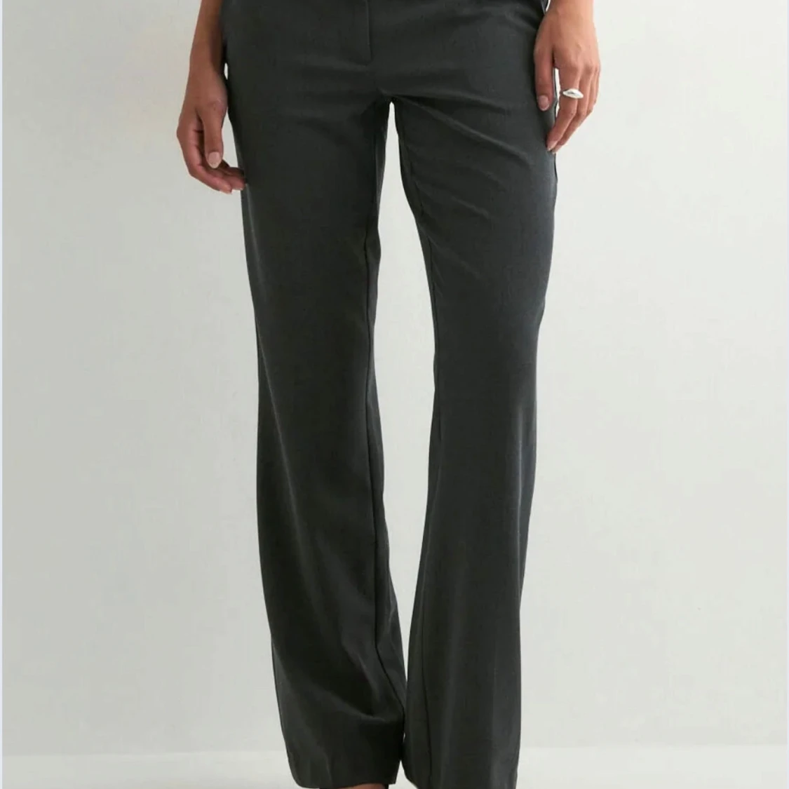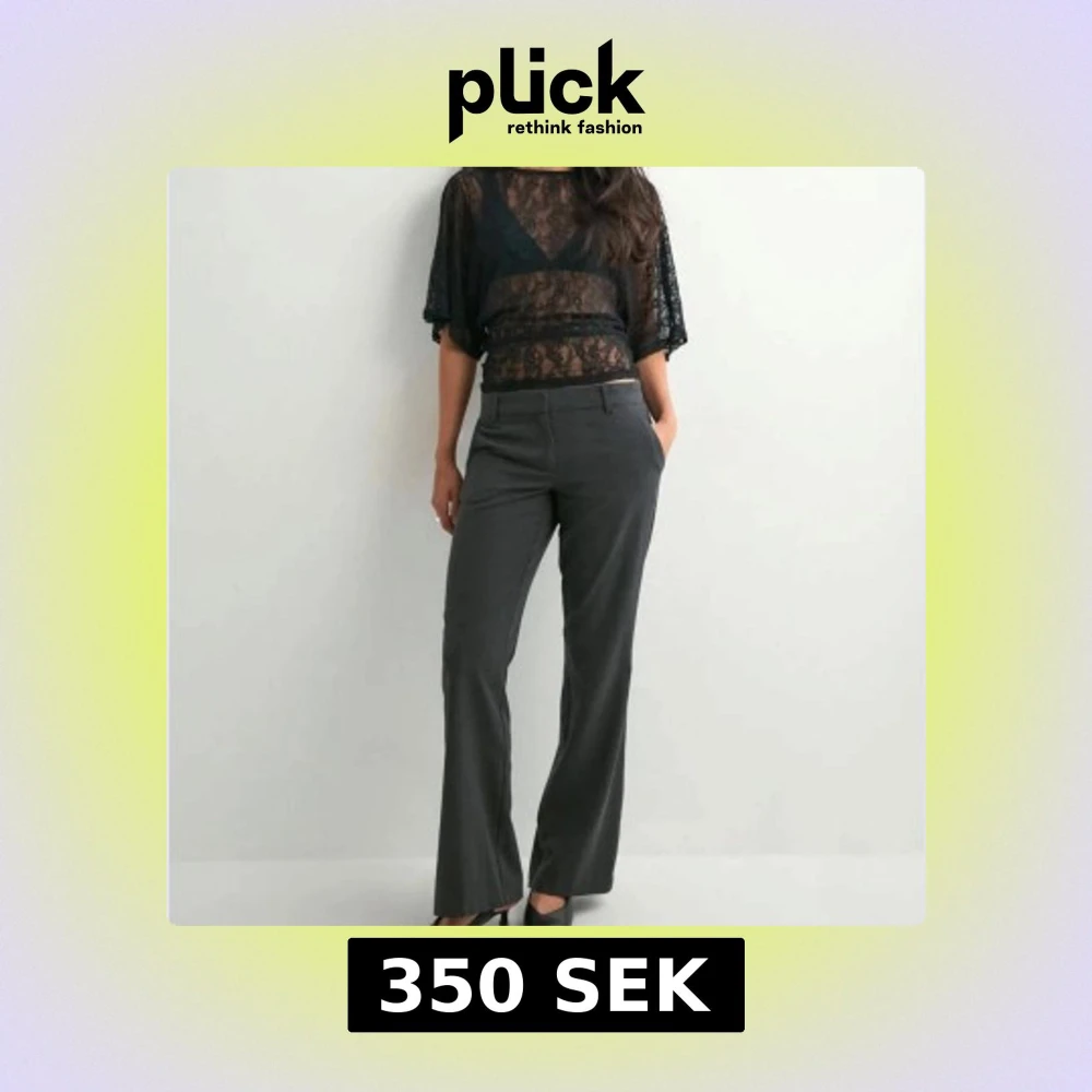 Snygga mörkgrå kostymbyxor med klassisk Flare -passform och low waist. Byxorna har raka ben och diskreta fickor framtill. Perfekta för en stilren och trendig look. Materialet känns mjukt och följsamt, vilket gör dem bekväma att bära hela dagen. Aldrig använda men utan prislapp.