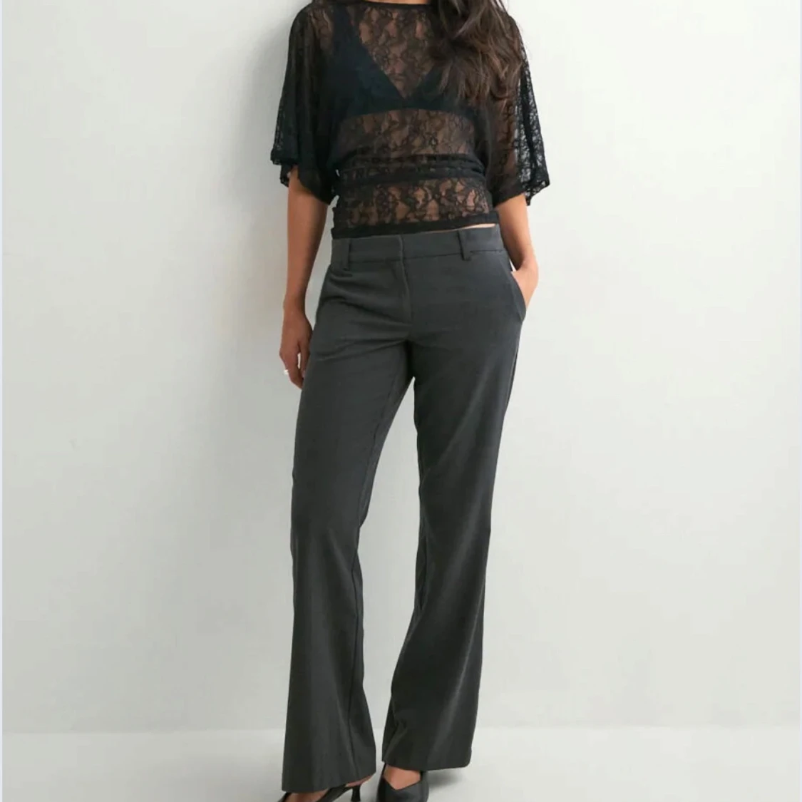 Mörkgrå kostymbyxor low waist