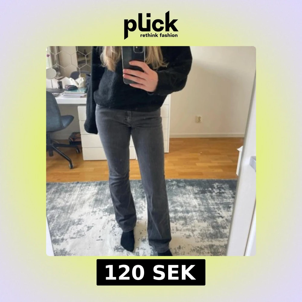 Snygga grå bootcut jeans från Lee i bomull och elastan. De har en klassisk femficksdesign och en bekväm passform. Säljer endast då de är lite stora i midjan på mig. Stl W30L31 på lappen men passar mig ganska bra som är 172, funkar även för kortare. Uppskattar storleken som en S.