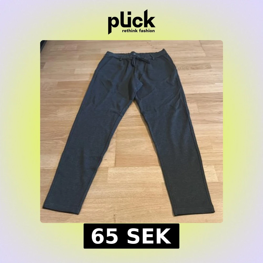 Mörkgrå mjukisbyxor från Black Story i storlek S. Byxorna har elastisk midja med snörning, bälteshällor och två sidofickor. Sköna och enkla att dra på sig, perfekta för chill dagar eller när du vill vara bekväm.