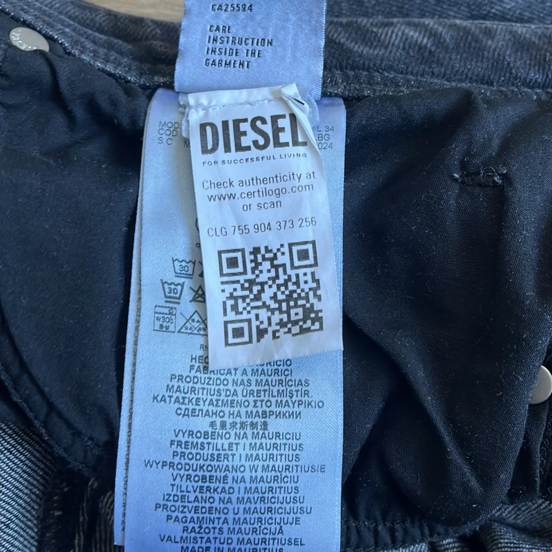 Säljer ett par mörkblå jeans från Diesel med klassisk femficksdesign och snygg tvätt. Jeansen har raka ben och normal passform, tillverkade i bomull. Bakfickan har den typiska Diesel-detaljen och patchen i midjan ger extra edge.