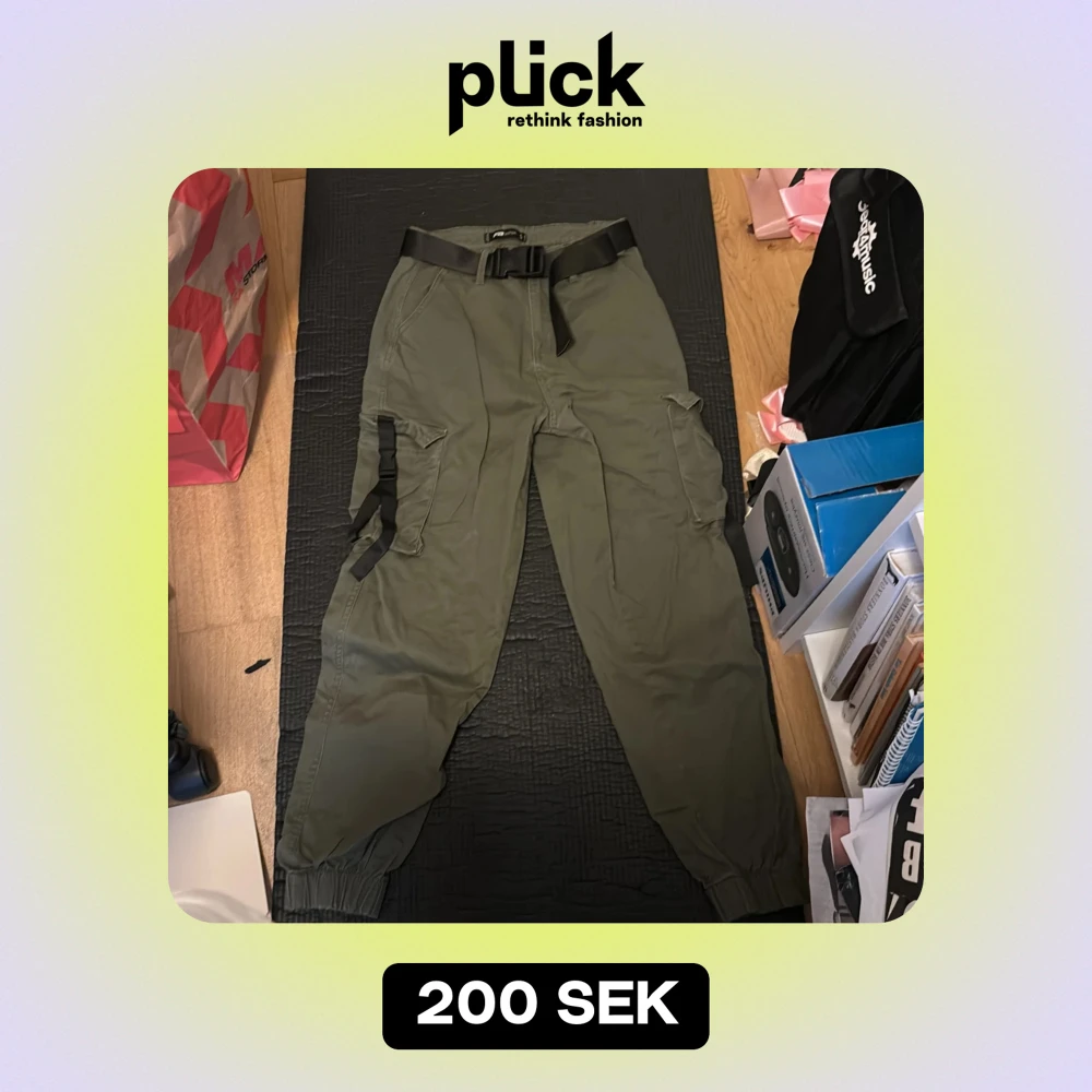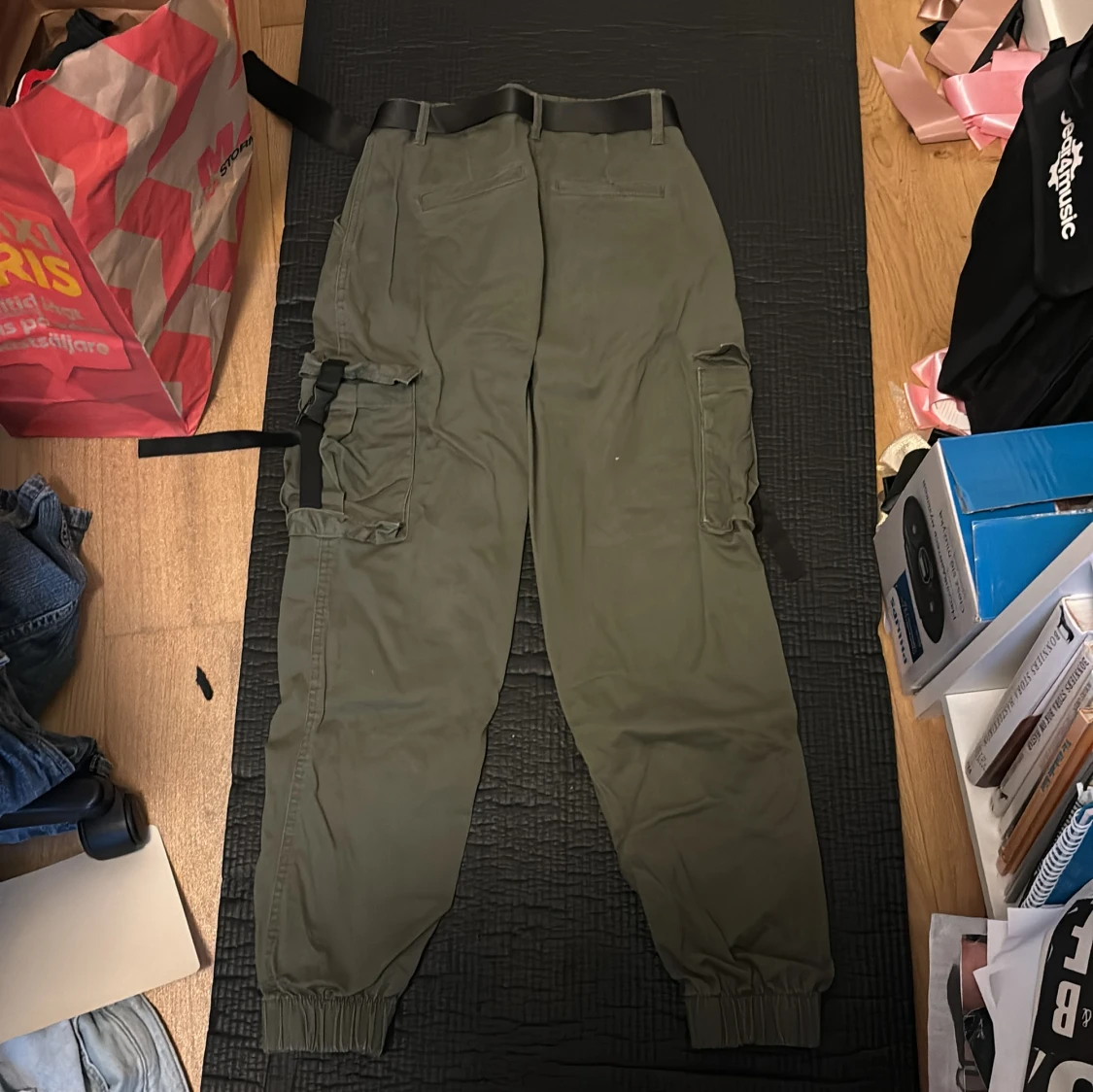Använd ca 3 gånger. Mörkgröna cargo jeans. S, skärp.