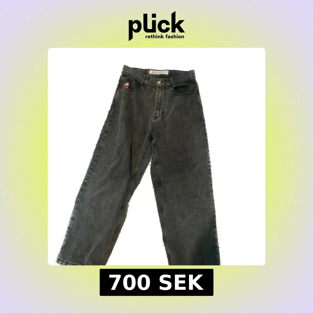 Mörkgröna Big Boy jeans från Polar med väldigt baggy/loose passform. Skick 6/10, då varje ben har brister i vardera häl (se bilder) samt ett litet hål längst ner på höger ben. Dock är ingen av dessa brister något man tänker på vid användning. Bara att höra av sig vid eventuella frågor😁