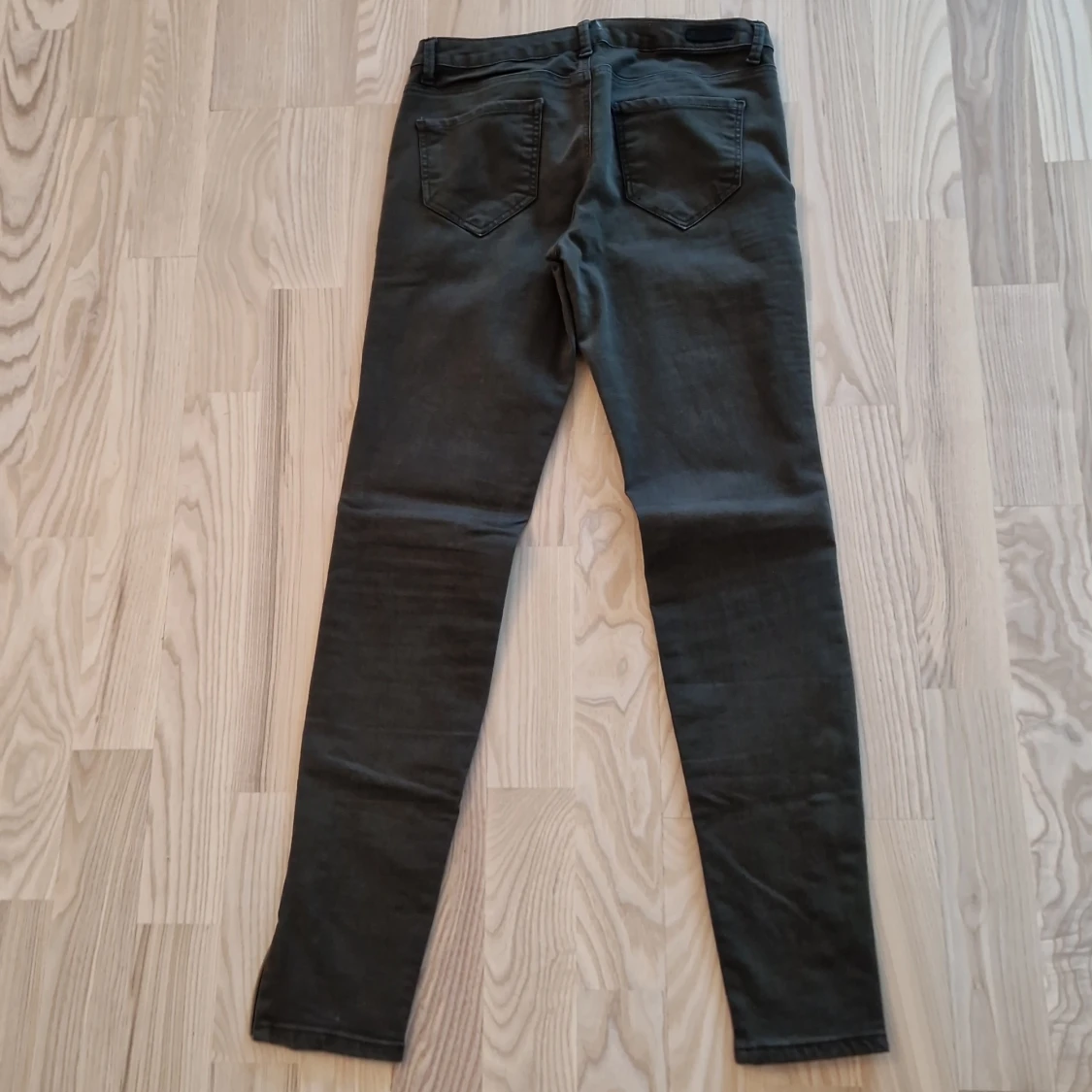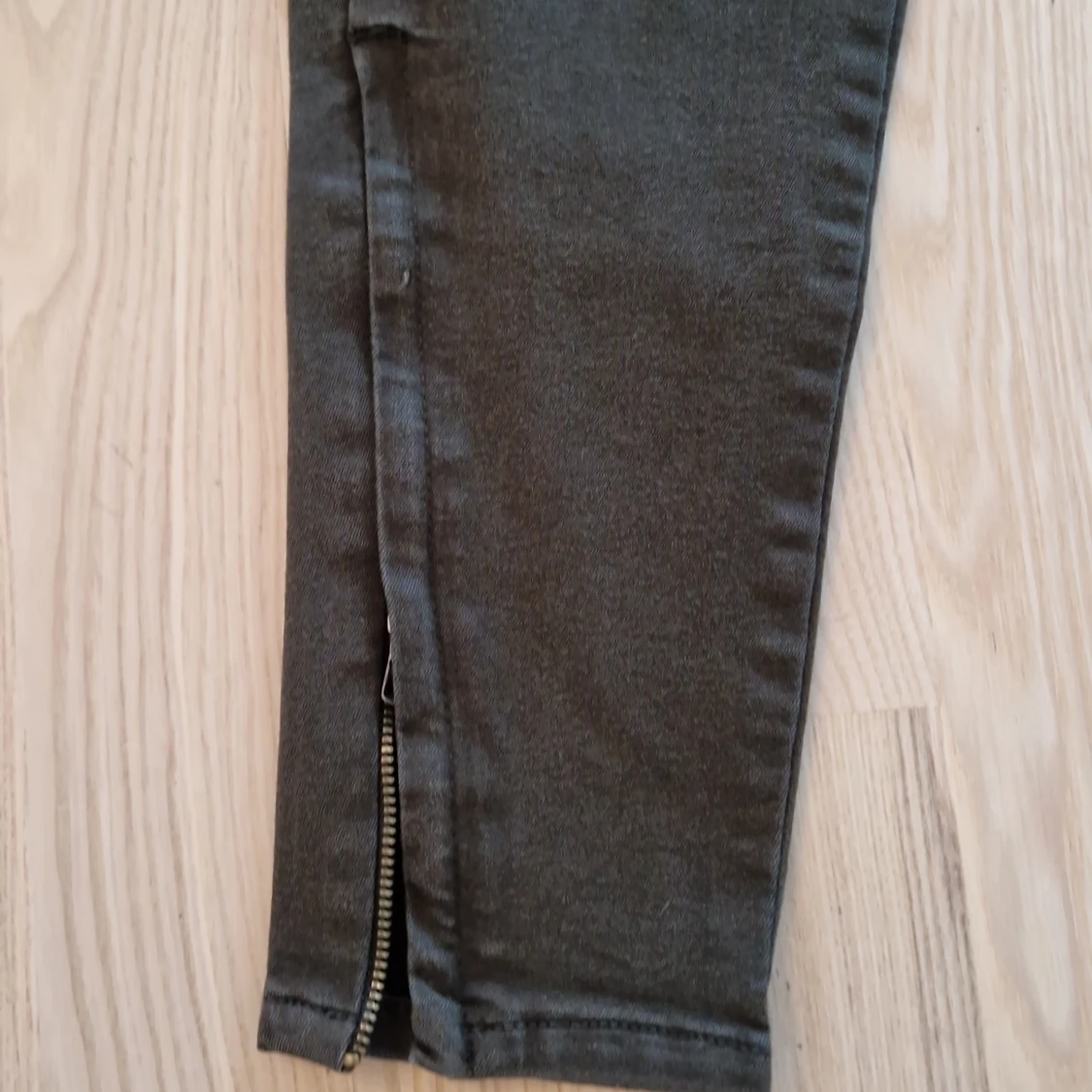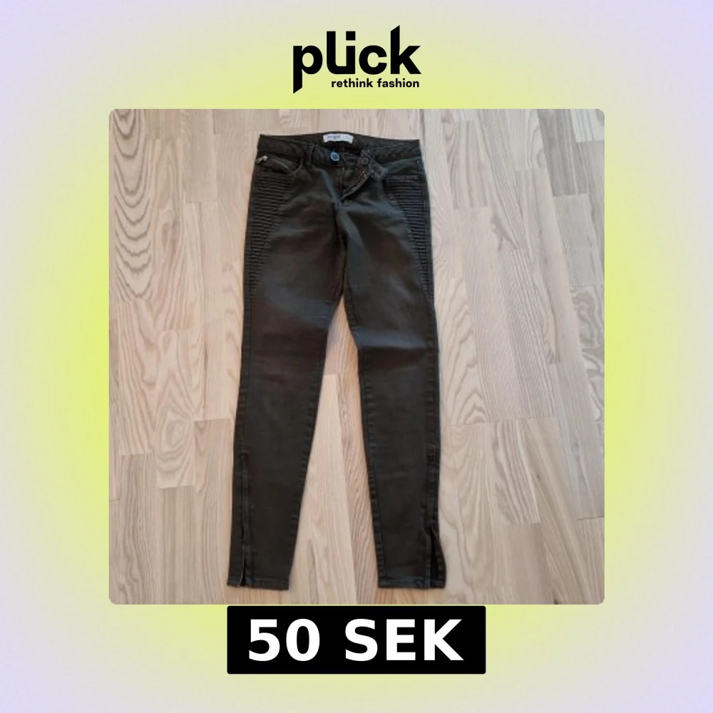 Snygga mörkgröna skinny jeans från Zara Basic med coola ribbade detaljer på sidorna, dragkedjor vid bensluten och en liten ficka med dragkedja fram. Jeansen är i stretchigt denim och har en modern look som passar till allt.