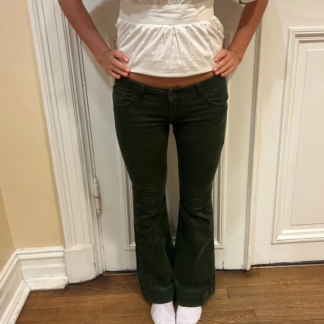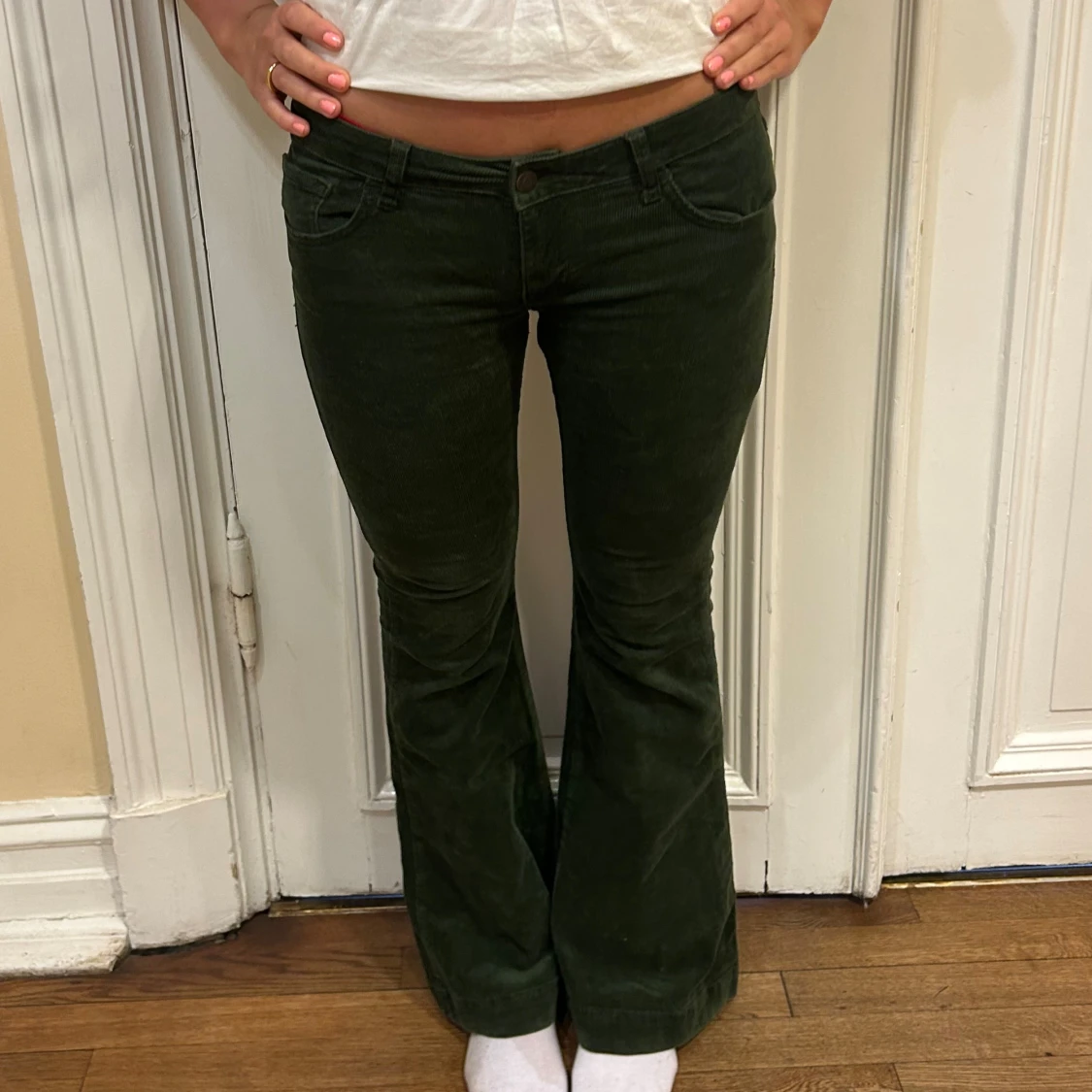 Mörkgröna manchesterbyxor storlek M