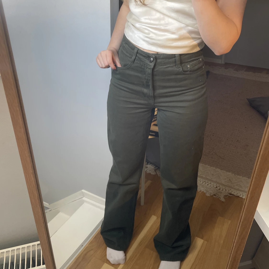 Mörkgröna highwast jeans från Zara! Storlek 38 med långa ben. Har nästintill aldrig använts ❤️
