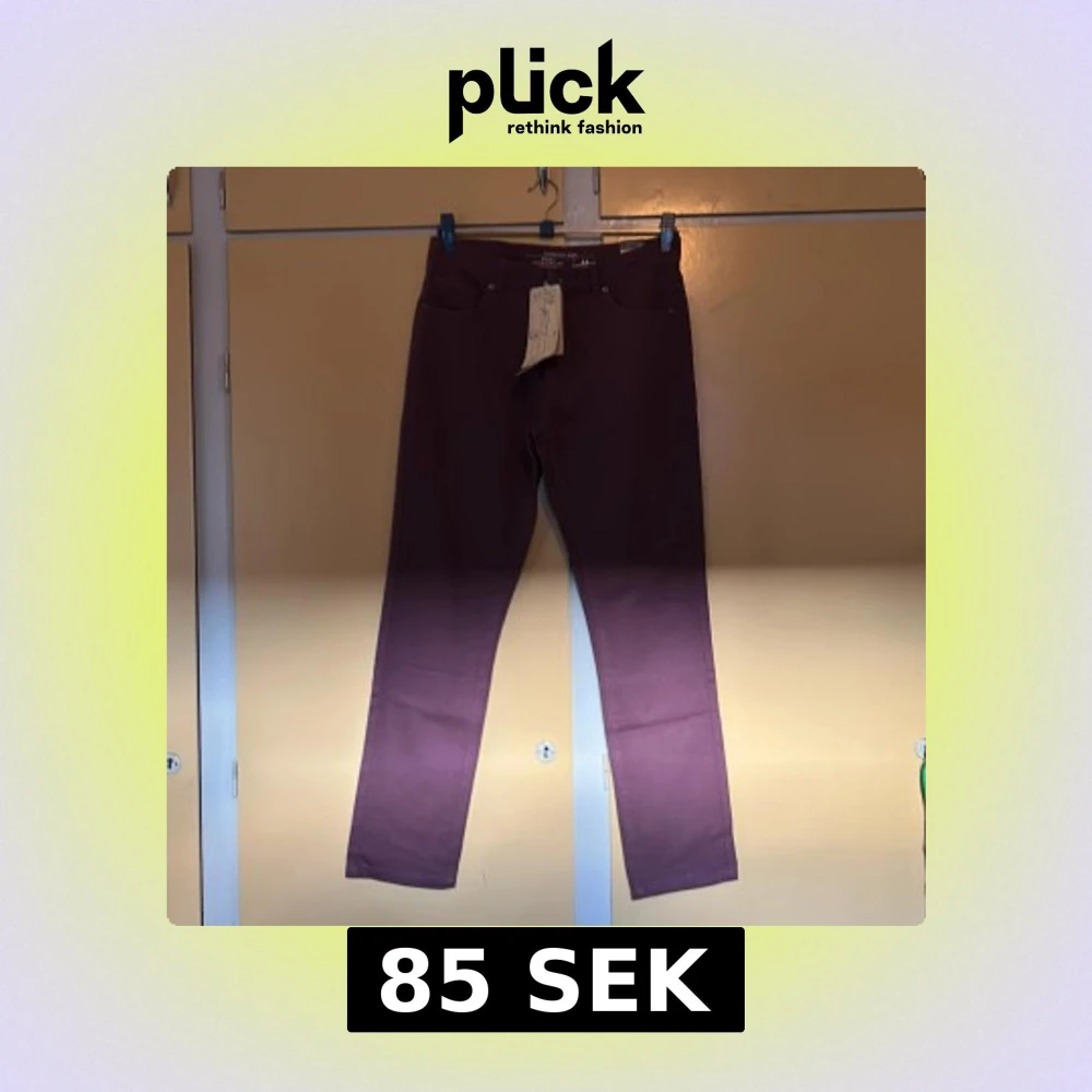 Snygga mörklila jeans från FCC i regular slim-modell. Klassisk femficksdesign, bälteshällor och dragkedja. Jeansen är tillverkade i ett mjukt bomullstyg med lite stretch för extra komfort. Perfekta för dig som vill sticka ut med färg men ändå ha en clean look.