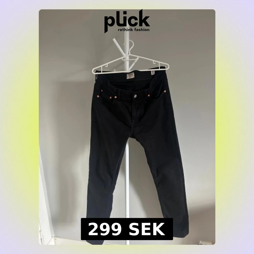 Säljer ett par svarta jeans från Morris i storlek 30/32. Klassisk femficksmodell med smal passform och snygga kopparfärgade nitar. Jeansen har en stilren look och är tillverkade i mjuk bomullsblandning för skön känsla.