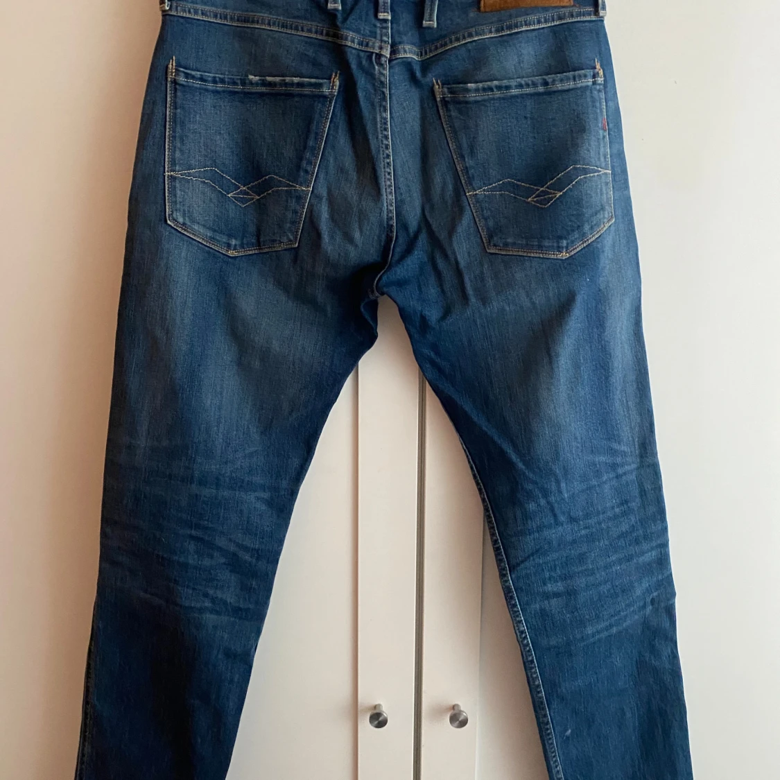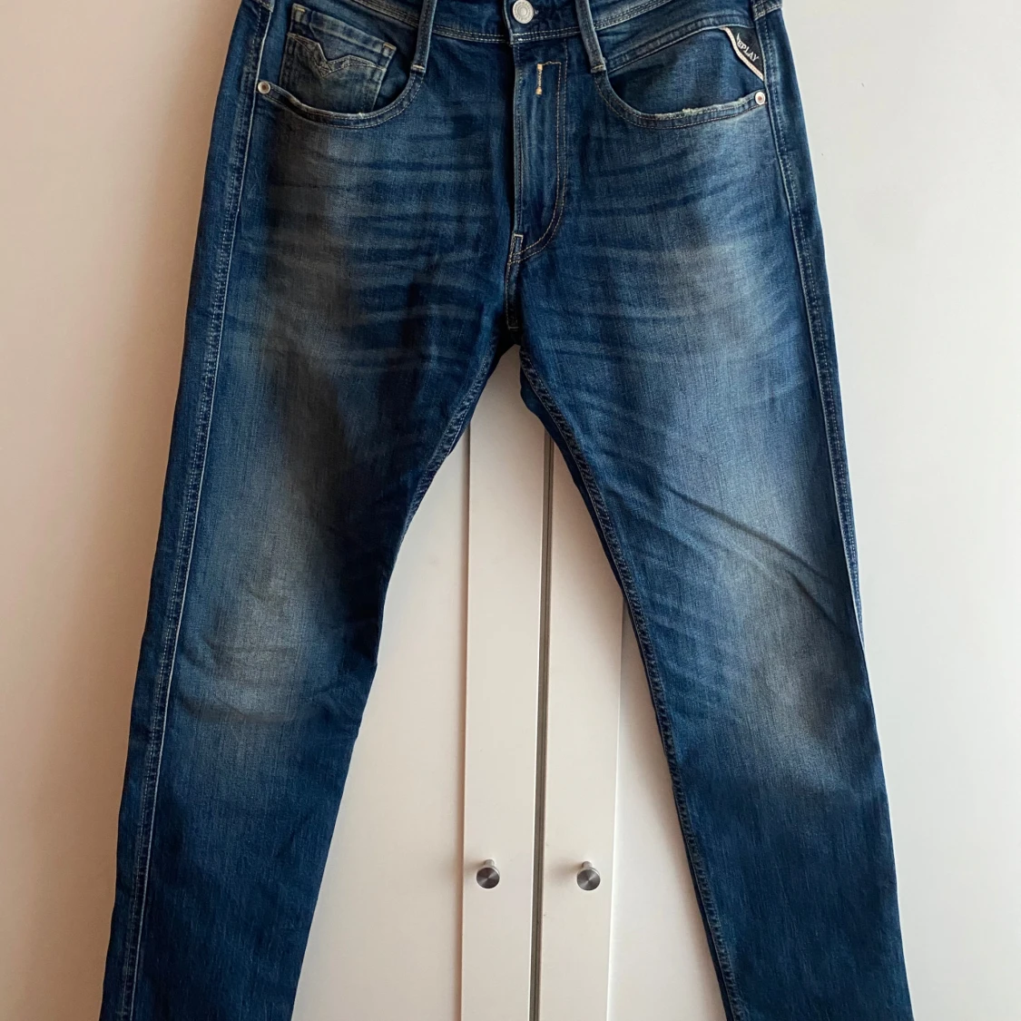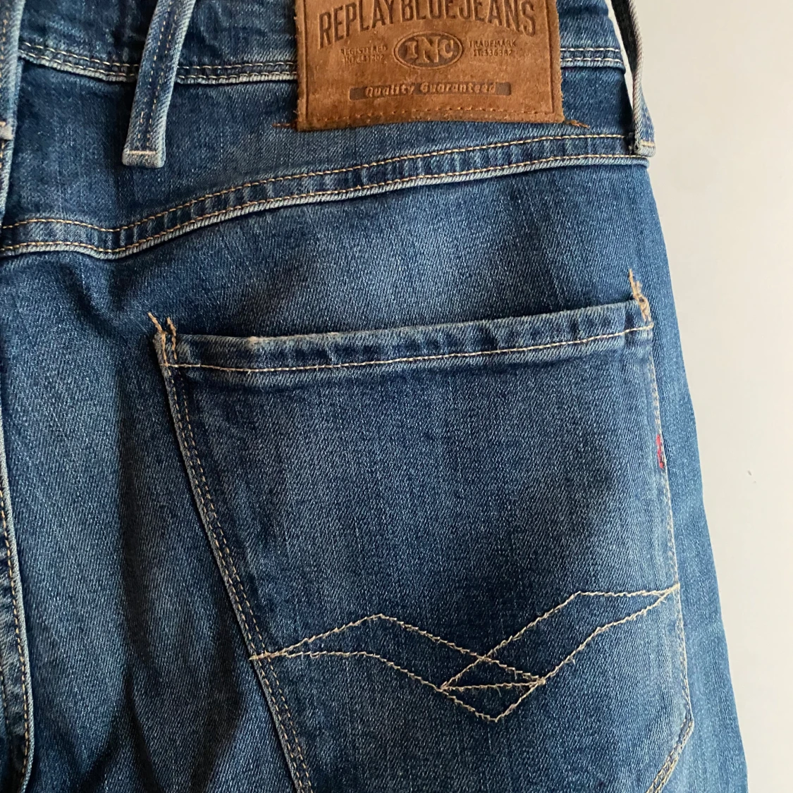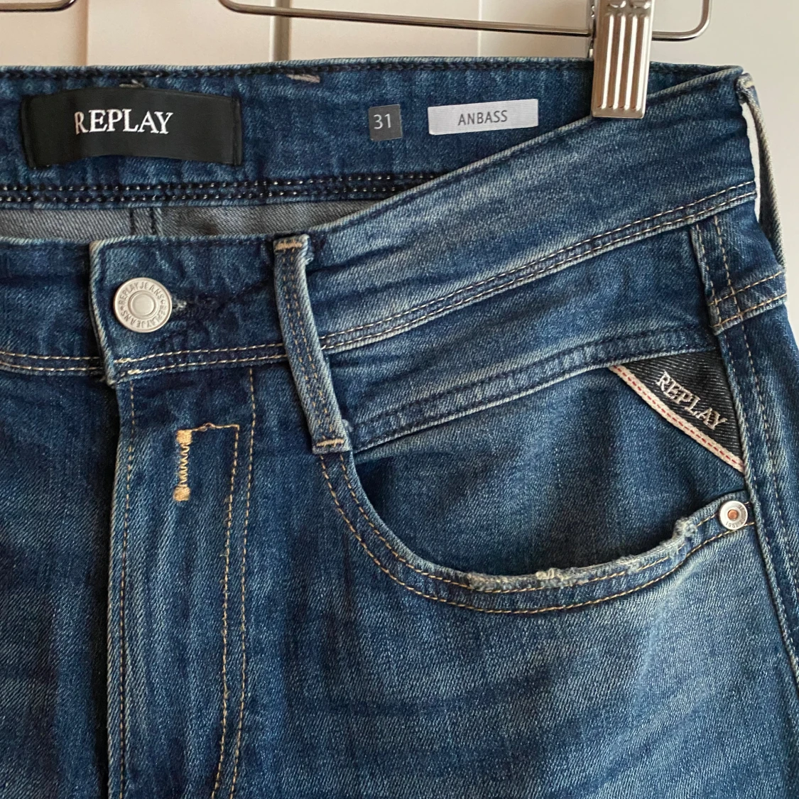 Snygga Replay Anbass jeans i klassisk blå tvätt med lätt slitning och raka ben. Jeansen har fem fickor, Replay-logga på myntfickan och bakficka samt läderpatch bak. Perfekt passform och stilren look för dig som gillar denim.