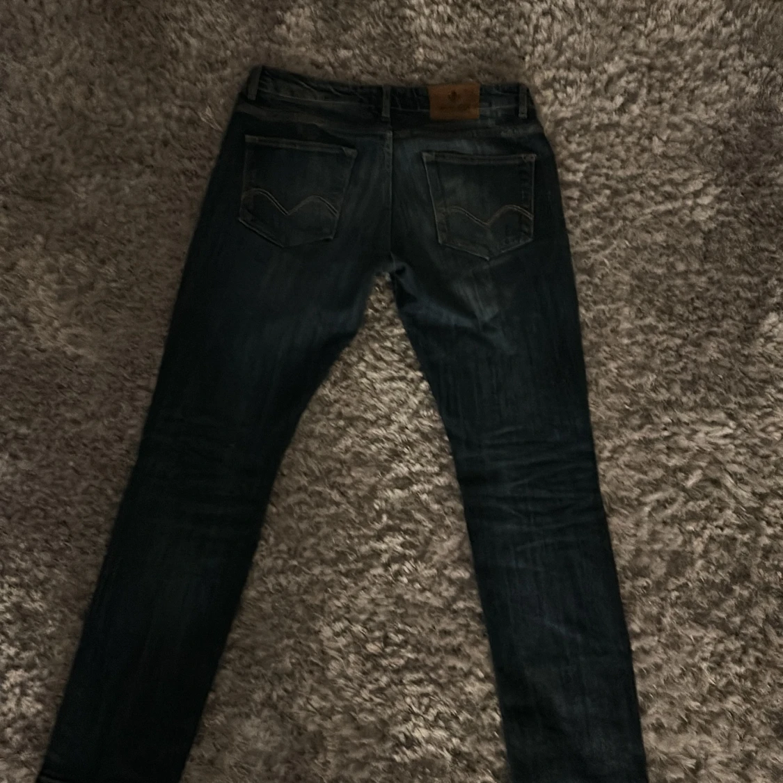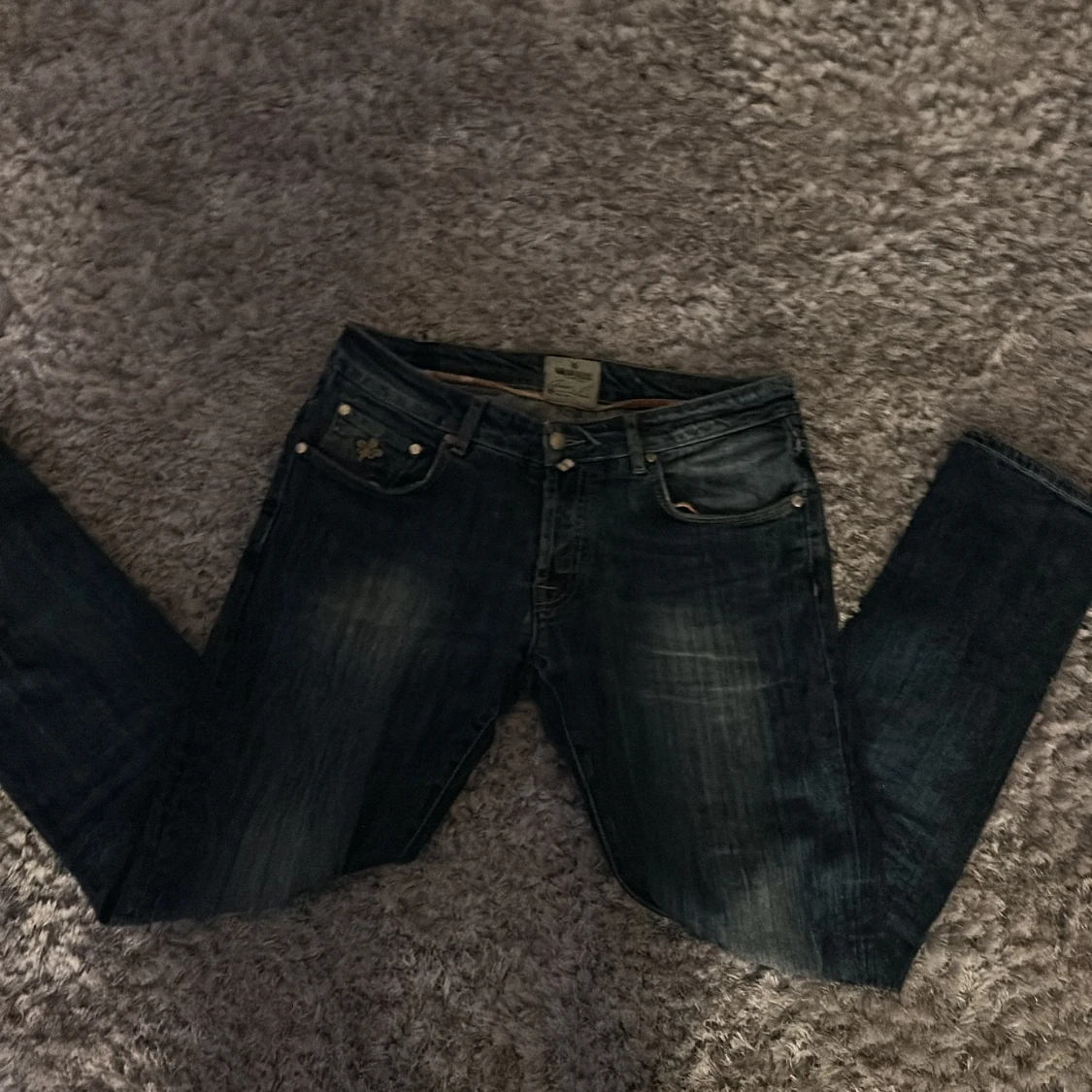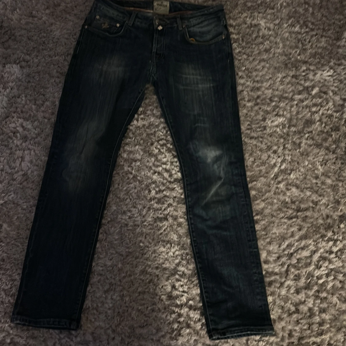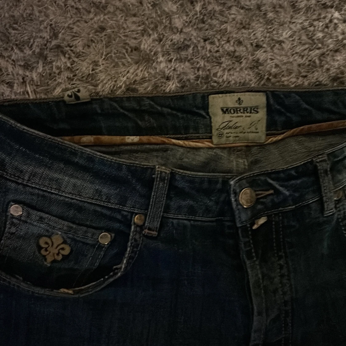 Snygga mörkblå jeans från Morris med klassisk femficksdesign och knappgylf. Perfekta för en stilren look. Märkesdetaljer på fickan och bak. Passar bra till både vardag och mer uppklädda tillfällen. Stilrena till finna tillfällen.straight pass form. Kan gå ner i pris