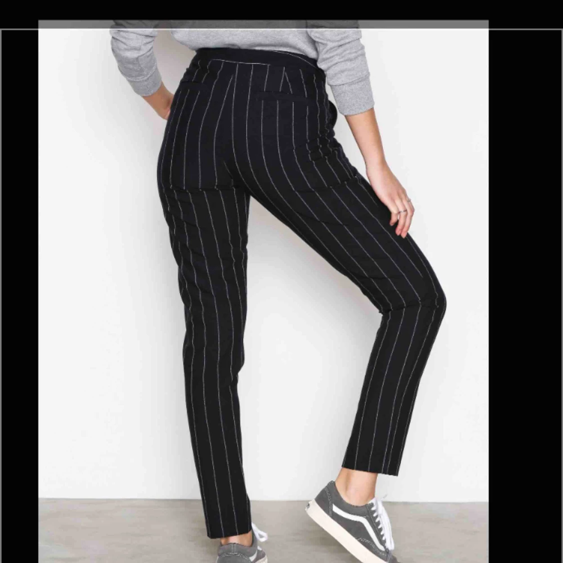 Supersnygga randiga kostymbyxor. De är aldrig använda utan endast provade en gång, behåller dem ej då de är lite för stora för mig tyvärr. Prislappen finns kvar! Frakt tillkommer!