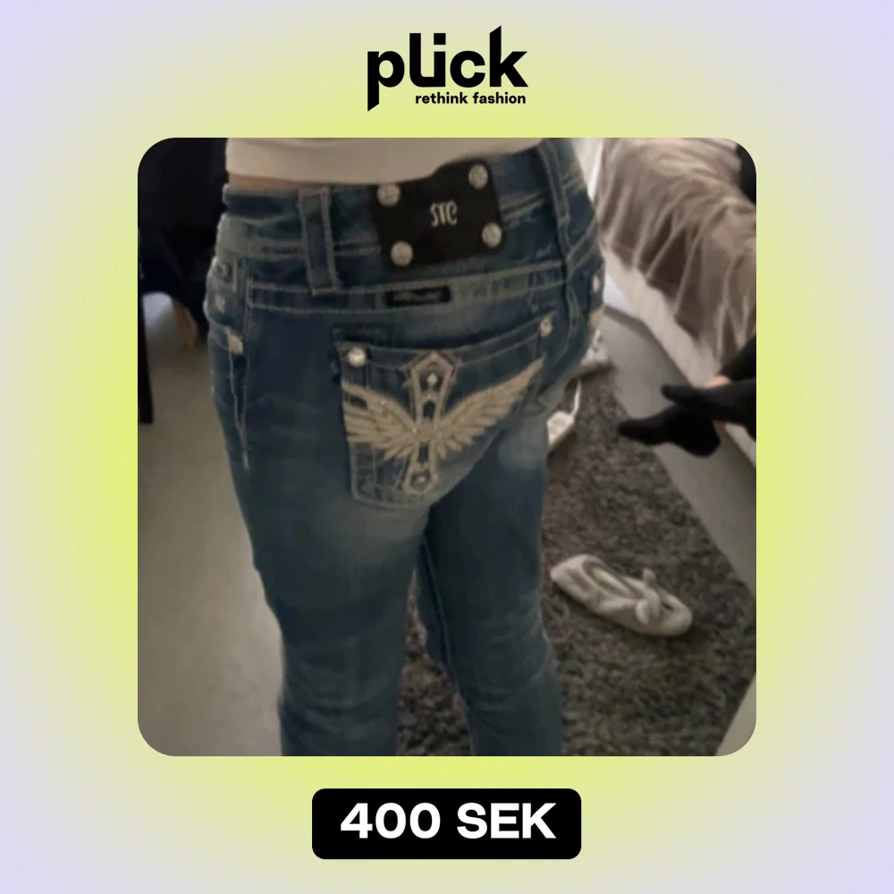 snygga miss me jeans i bra skick, midjemått tvärs över 38 cm, innerbenslängd 83 cm skriv för fler bilder