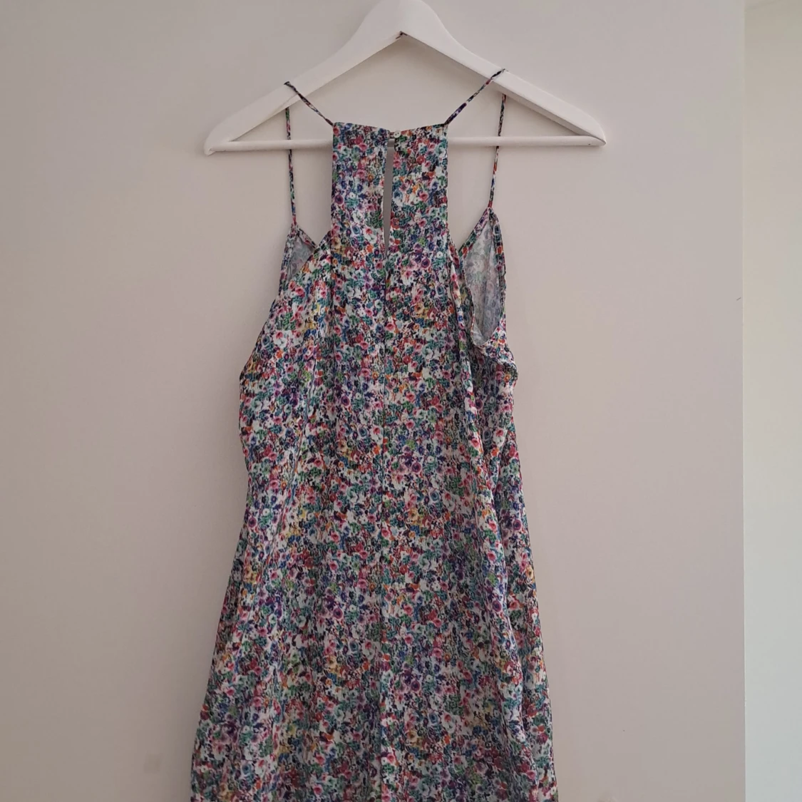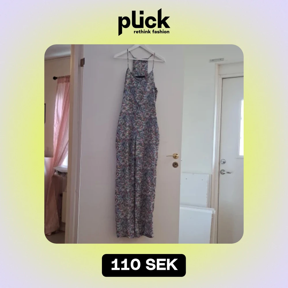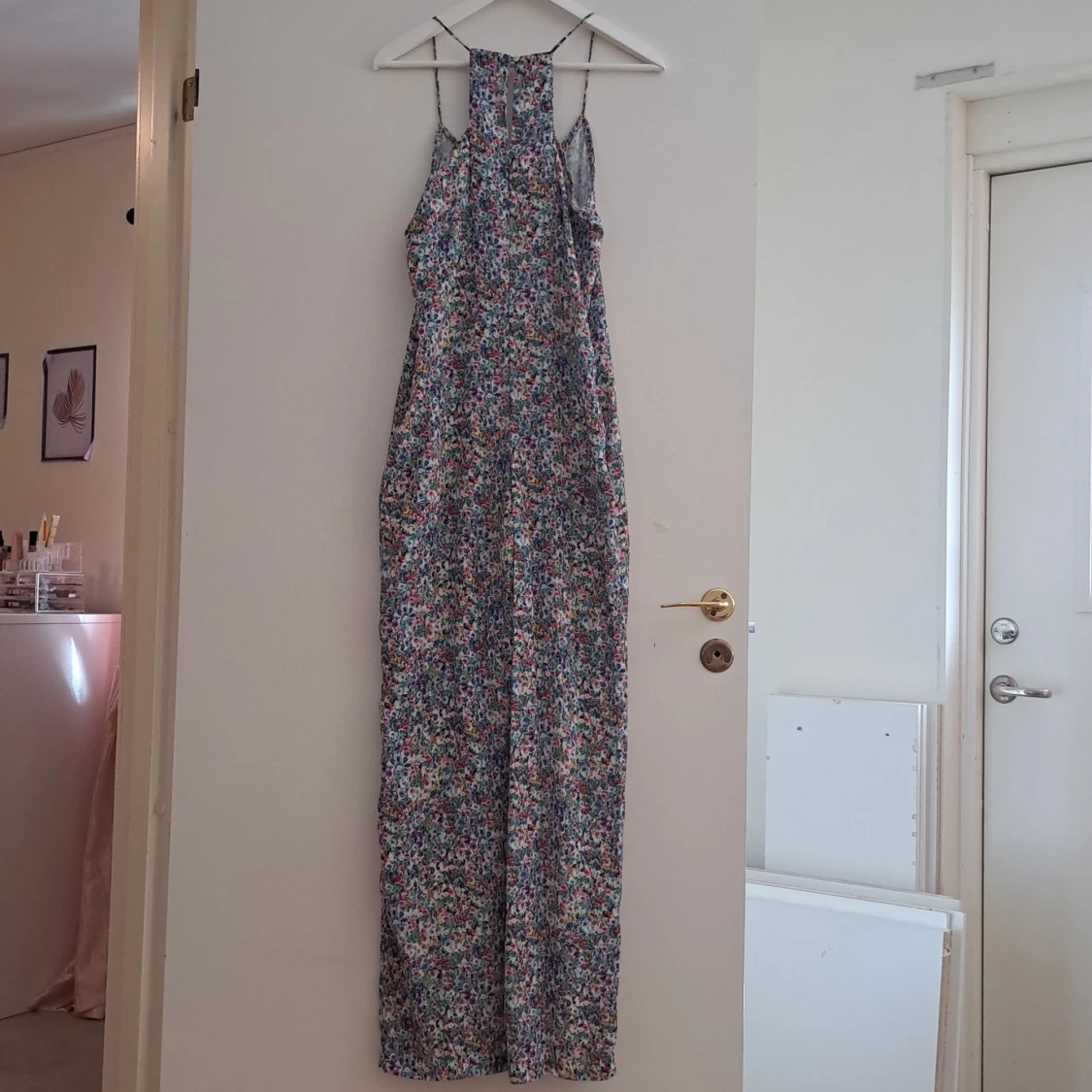 Säljer en superfin blommig jumpsuit med smala axelband. Perfekt för sommardagar eller en avslappnad fest. Det har en lös passform och är gjord i ett lätt och bekvämt material. Den har ett färgglatt mönster som verkligen sticker ut!