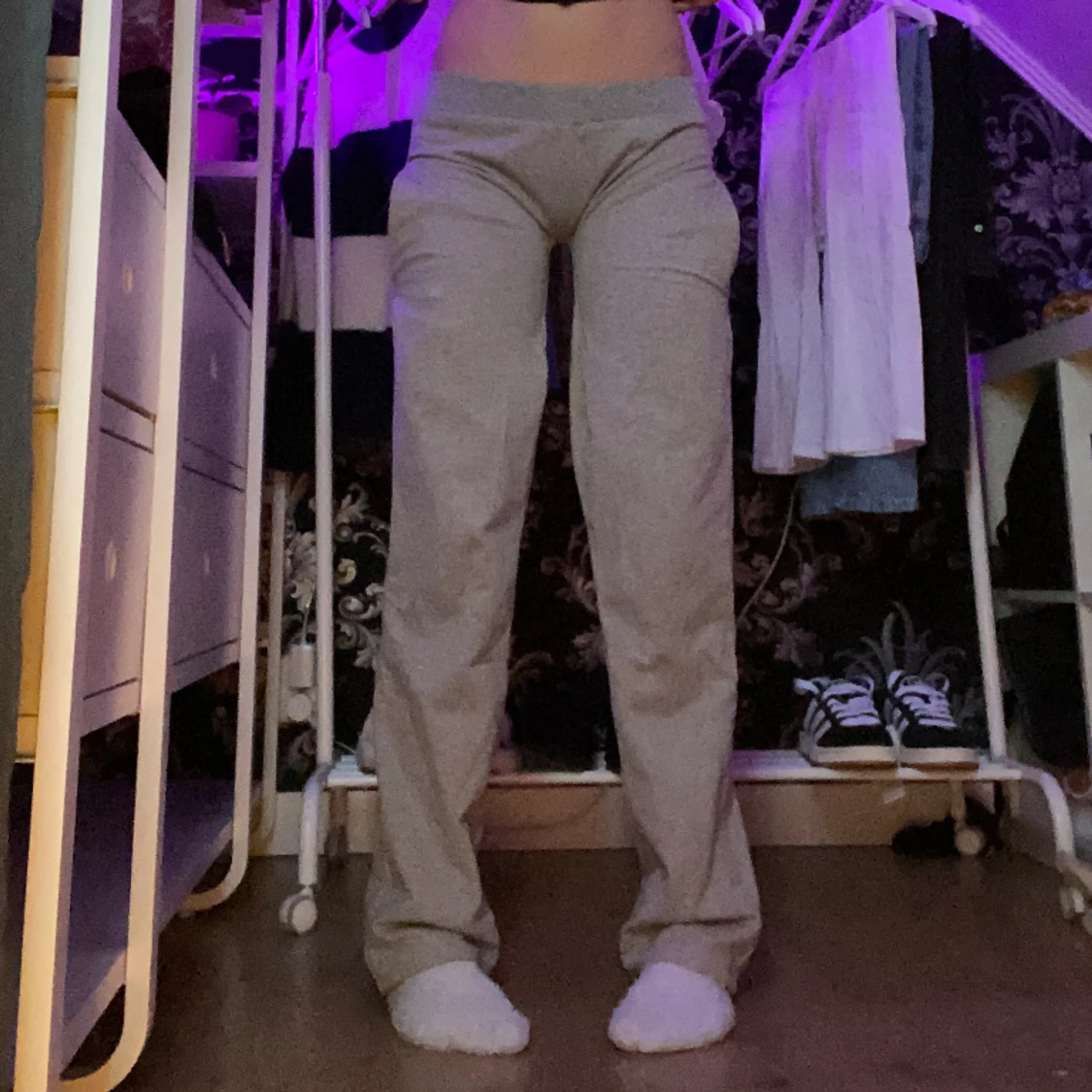 Lågmidjade mysbyxor i bra skick💞 Har aldrig använt dem för att de är för tajta runt benen. Jag gjorde de i slöjden, passar någon som har xs. De är även väldigt långa, jag är 174 cm och är perfekta i längden😍 Skriv till mig för fler frågor🫶🏼