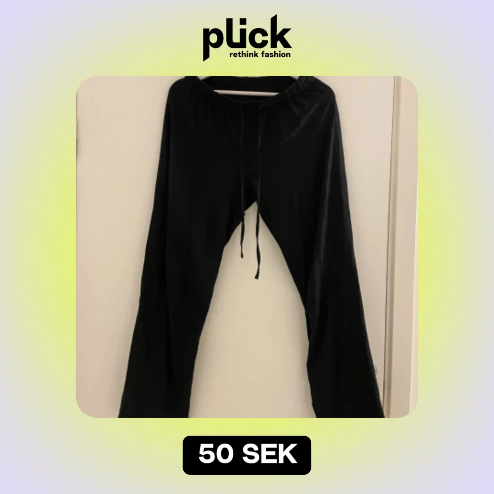 Säljer mina svarta mysbyxor för de är lite korta i benen på mig. Haft de jättelänge men har inte använts många gånger! Ganska tunnt tyg och det är 100% bomull.