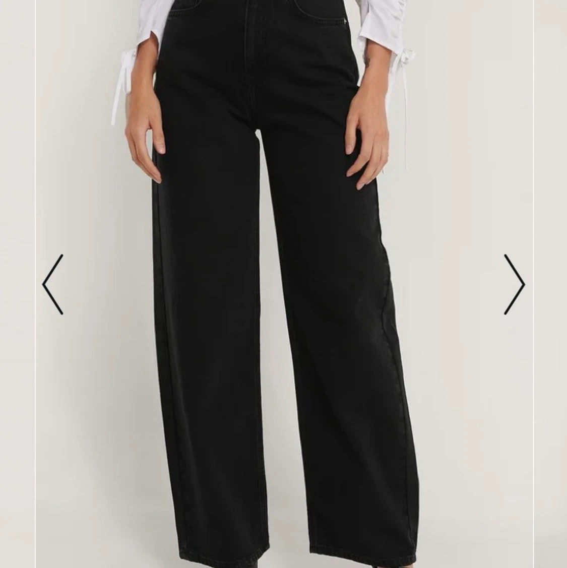 Wide jeans från nakd, passar till folk med större rumpa och lår och inte på mig med långa och smal ben. Jag är 163 oh de är lite långa på mig! Hittar inte exakt samma på NAKD men kan tänka att de ser ut som på den bilden jag har ovanför 💓 pris diskuteras!