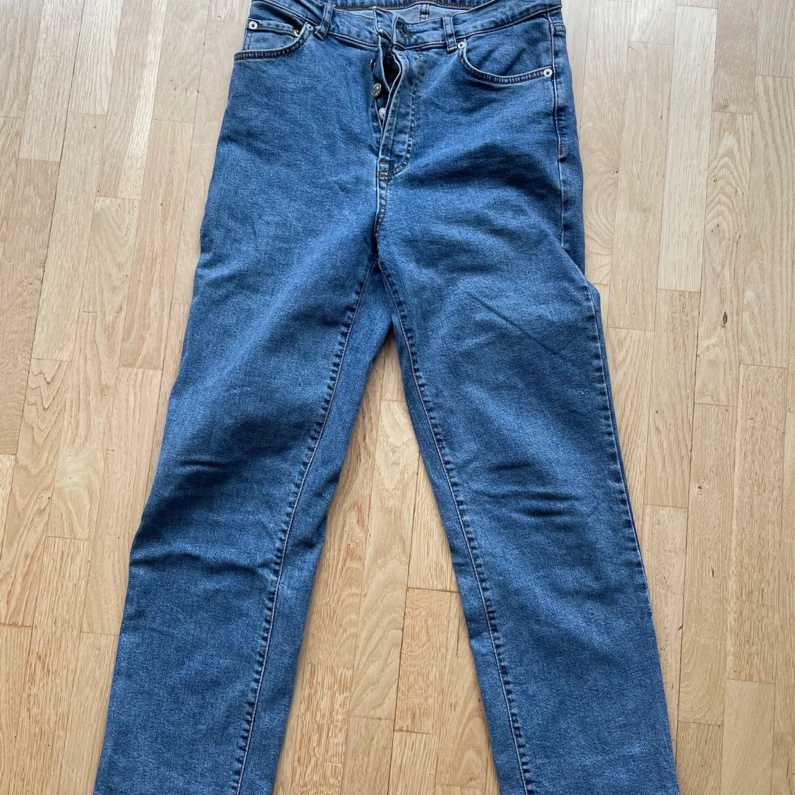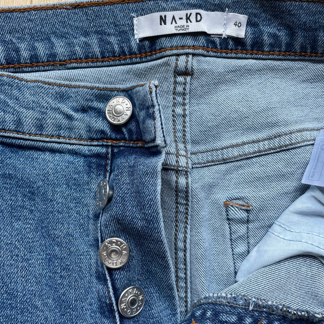 Blåa jeans ifrån NA-KD i storlek 40. Längden på byxorna är 100 cm. Kan fraktas och även mötas upp