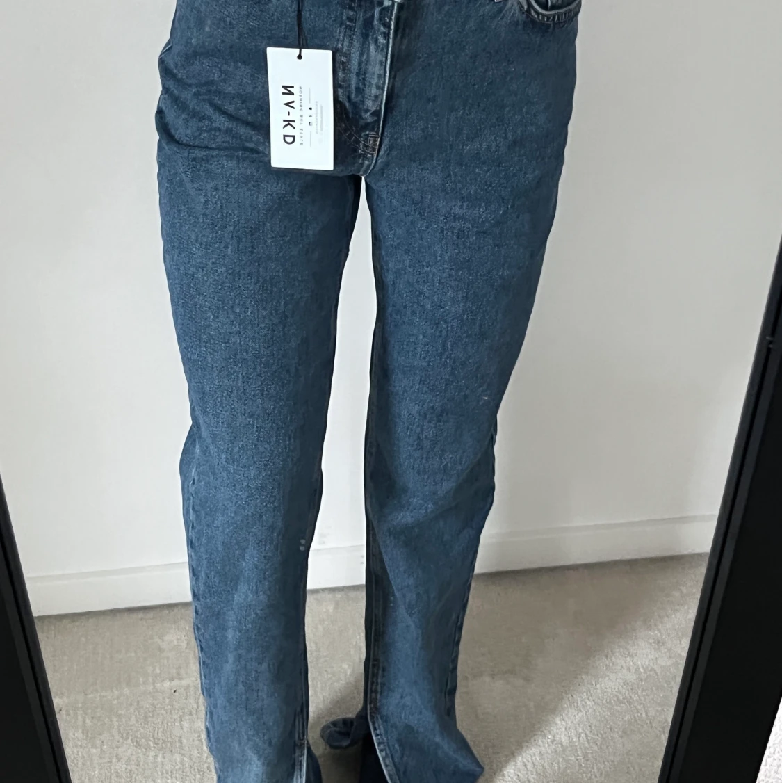 Köpte för någon månad sen, men var för långa på mig som är 160. Helt oanvända, med lappen kvar. Jätte sköna och bekväma. Vet ej hur tydligt det syns men det är en slit längst ner på jeansen! Möts ej upp, du står för frakt☺️☺️