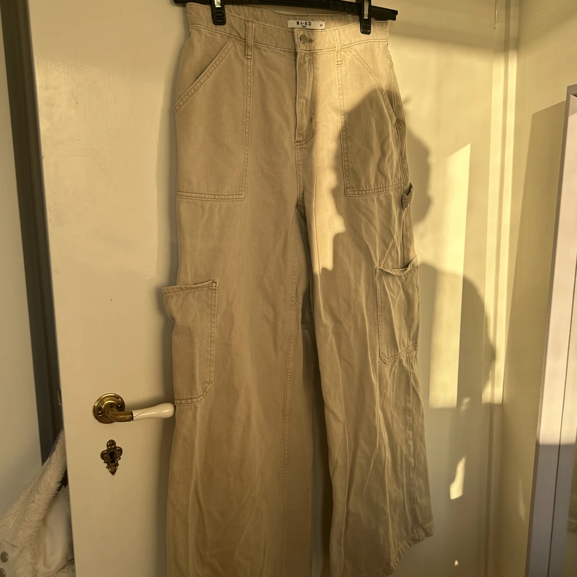 beige cargobyxa från NA-KD insydd i midjan pga lös passform