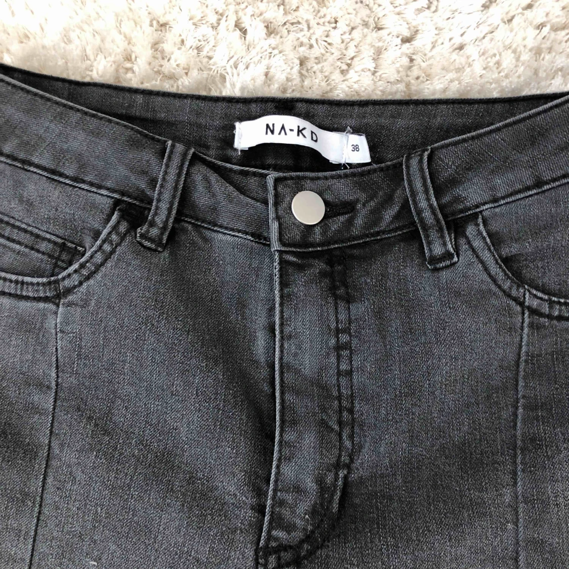 Nästan oanvända Nakd jeans, gråa med en söm längs med benen på framsidan & slits nedtill. 80kr plus frakt! Kan mötas upp om du bor nära. Först till kvarn, hör av dig vid frågor