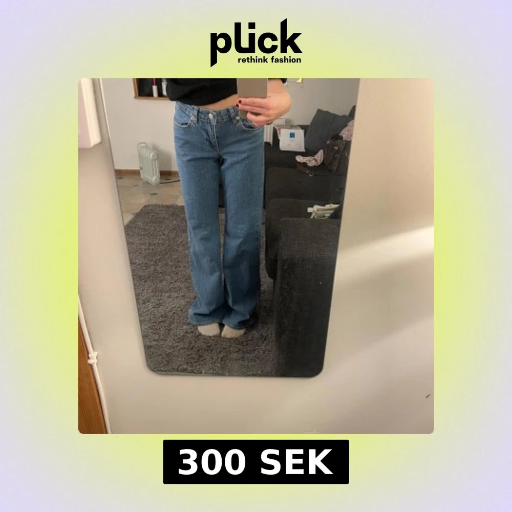 Säljer ett par snygga low waist blå jeans från NA-KD. Dem är endast använda 1 gång och är i väldigt fint skick. Köpare står för frakten