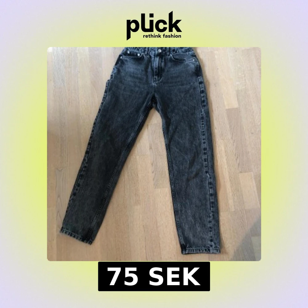 Säljer ett par grå tvättade jeans från NA-KD med klassisk femficksdesign och raka ben. Jeansen har hög midja och stängs med dragkedja och knapp. Ser mörkare ut på långdistansbild, är en mer realistisk färg på närbildena.